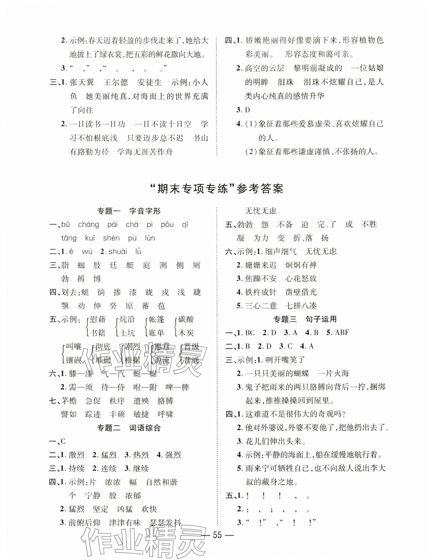 注:目前有些书本章节名称可能整理的还不是很完善,但都是按照顺序排列的,请同学们按照顺序仔细查找。练习册 2025年尚学生香英才天天练四年级语文下册人教版 答案主要是用来给同学们做完题方便对答案用的,请勿直接抄袭。