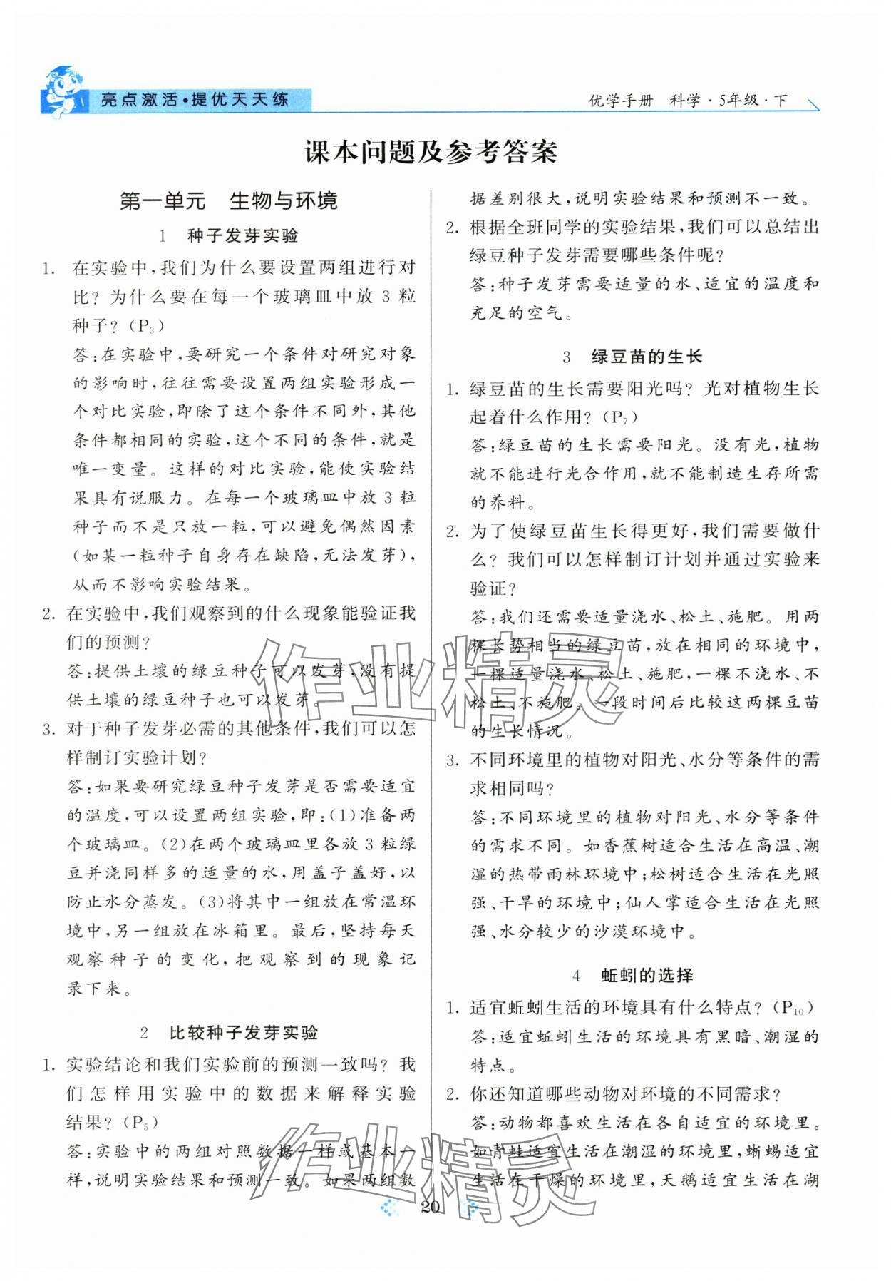 注:目前有些书本章节名称可能整理的还不是很完善,但都是按照顺序排列的,请同学们按照顺序仔细查找。练习册 2025年亮点激活提优天天练五年级科学下册教科版 答案主要是用来给同学们做完题方便对答案用的,请勿直接抄袭。