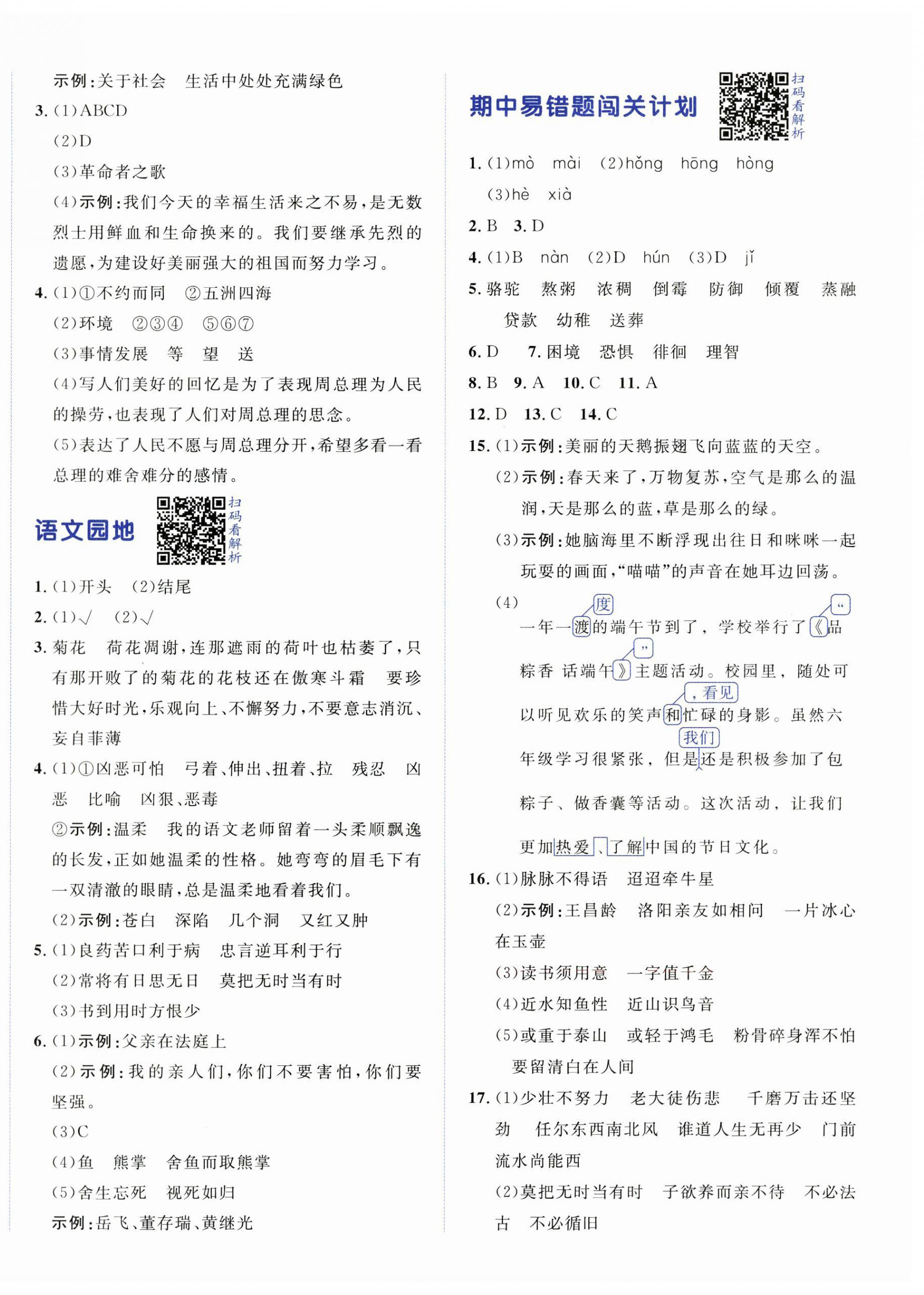 注:目前有些书本章节名称可能整理的还不是很完善,但都是按照顺序排列的,请同学们按照顺序仔细查找。练习册 2025年阳光计划小学同步六年级语文下册人教版 答案主要是用来给同学们做完题方便对答案用的,请勿直接抄袭。