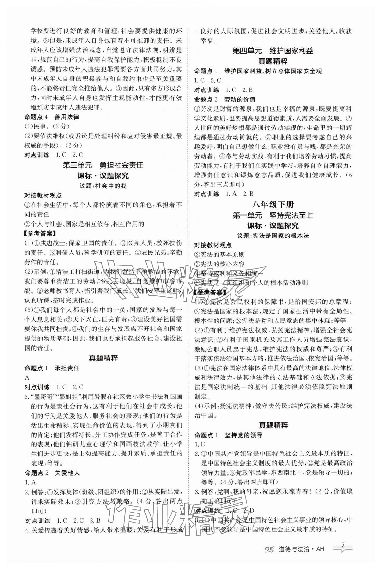 注:目前有些书本章节名称可能整理的还不是很完善,但都是按照顺序排列的,请同学们按照顺序仔细查找。练习册 2025年中考特训营道德与法治安徽专版 答案主要是用来给同学们做完题方便对答案用的,请勿直接抄袭。