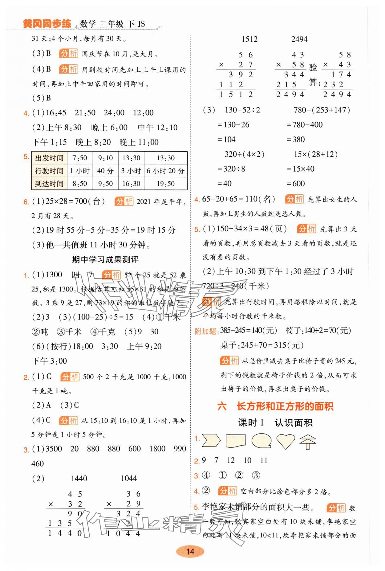 注:目前有些书本章节名称可能整理的还不是很完善,但都是按照顺序排列的,请同学们按照顺序仔细查找。练习册 2025年黄冈同步练一日一练三年级数学下册苏教版 答案主要是用来给同学们做完题方便对答案用的,请勿直接抄袭。
