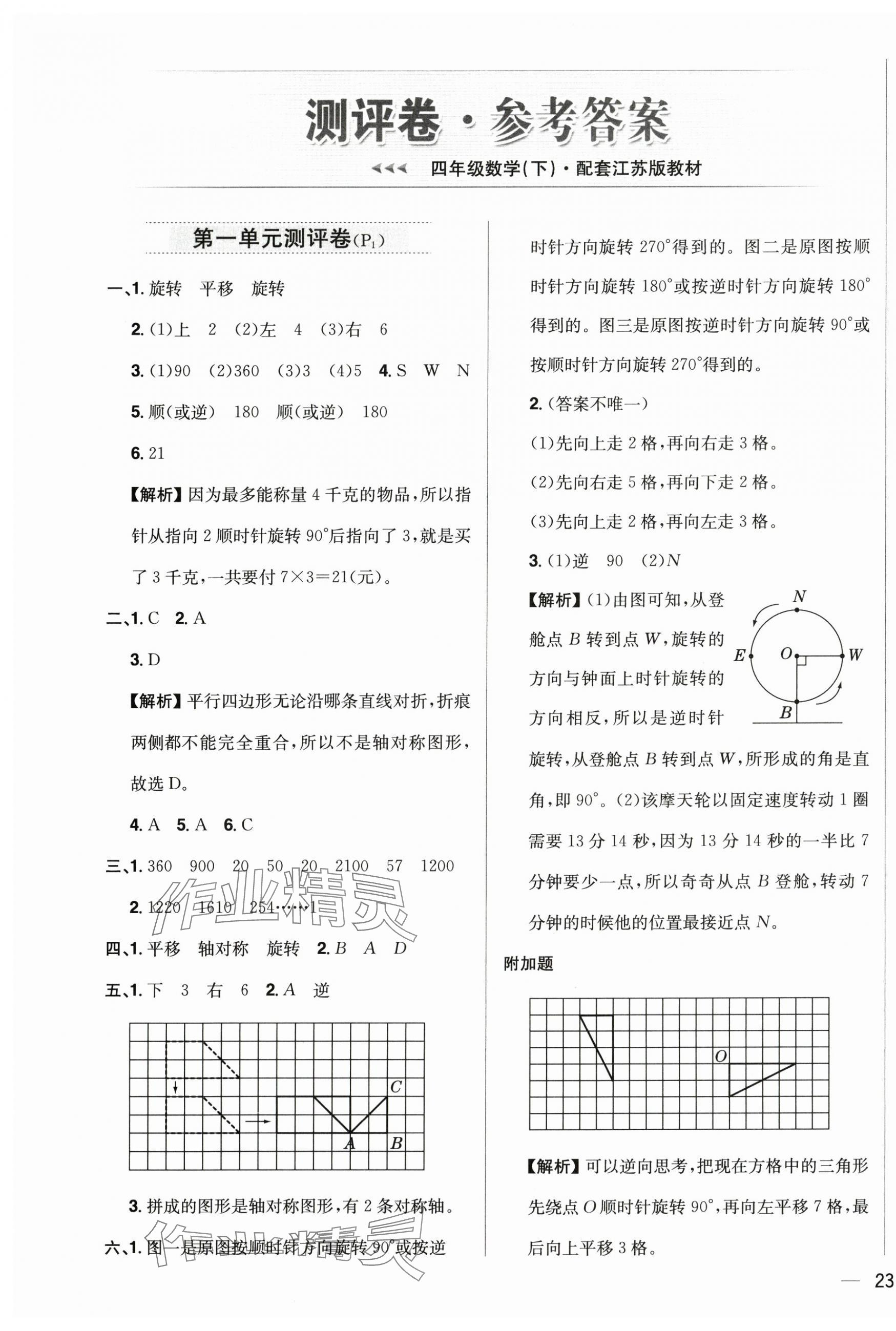 注:目前有些书本章节名称可能整理的还不是很完善,但都是按照顺序排列的,请同学们按照顺序仔细查找。练习册 2025年教材全练四年级数学下册苏教版 答案主要是用来给同学们做完题方便对答案用的,请勿直接抄袭。