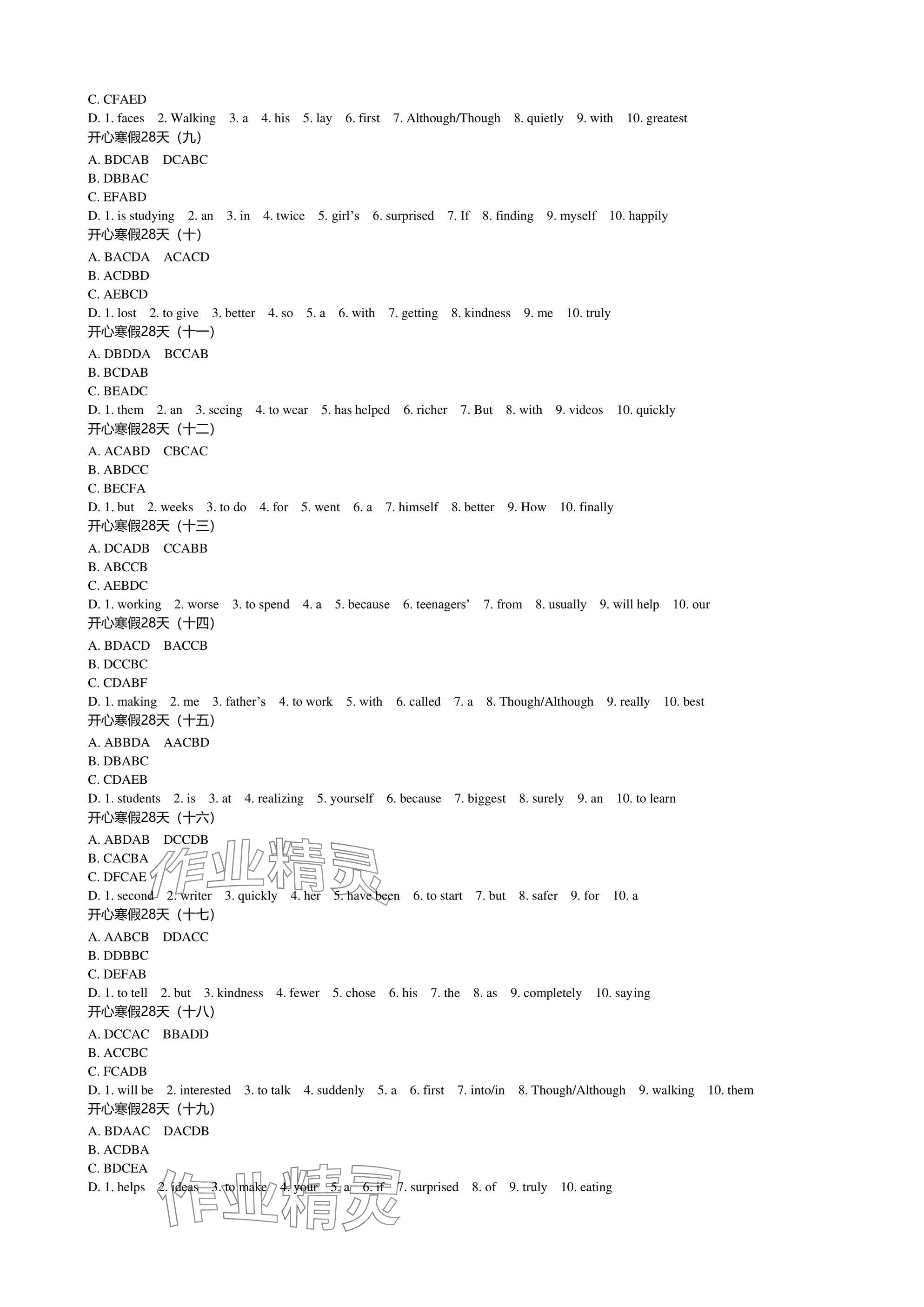 注:目前有些书本章节名称可能整理的还不是很完善,但都是按照顺序排列的,请同学们按照顺序仔细查找。练习册 2025年春如金卷初中英语寒假作业本八年级 答案主要是用来给同学们做完题方便对答案用的,请勿直接抄袭。