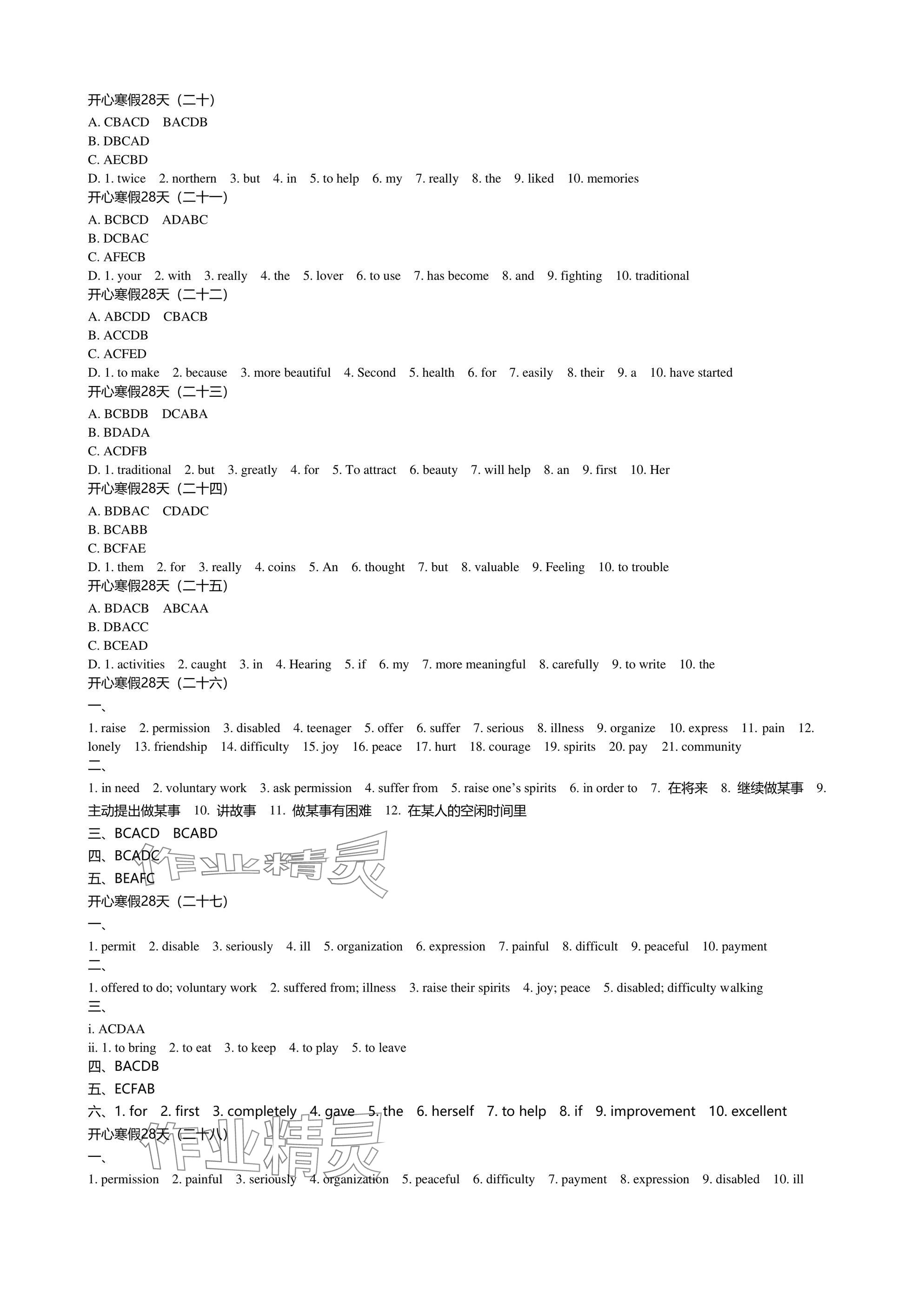 注:目前有些书本章节名称可能整理的还不是很完善,但都是按照顺序排列的,请同学们按照顺序仔细查找。练习册 2025年春如金卷初中英语寒假作业本八年级 答案主要是用来给同学们做完题方便对答案用的,请勿直接抄袭。
