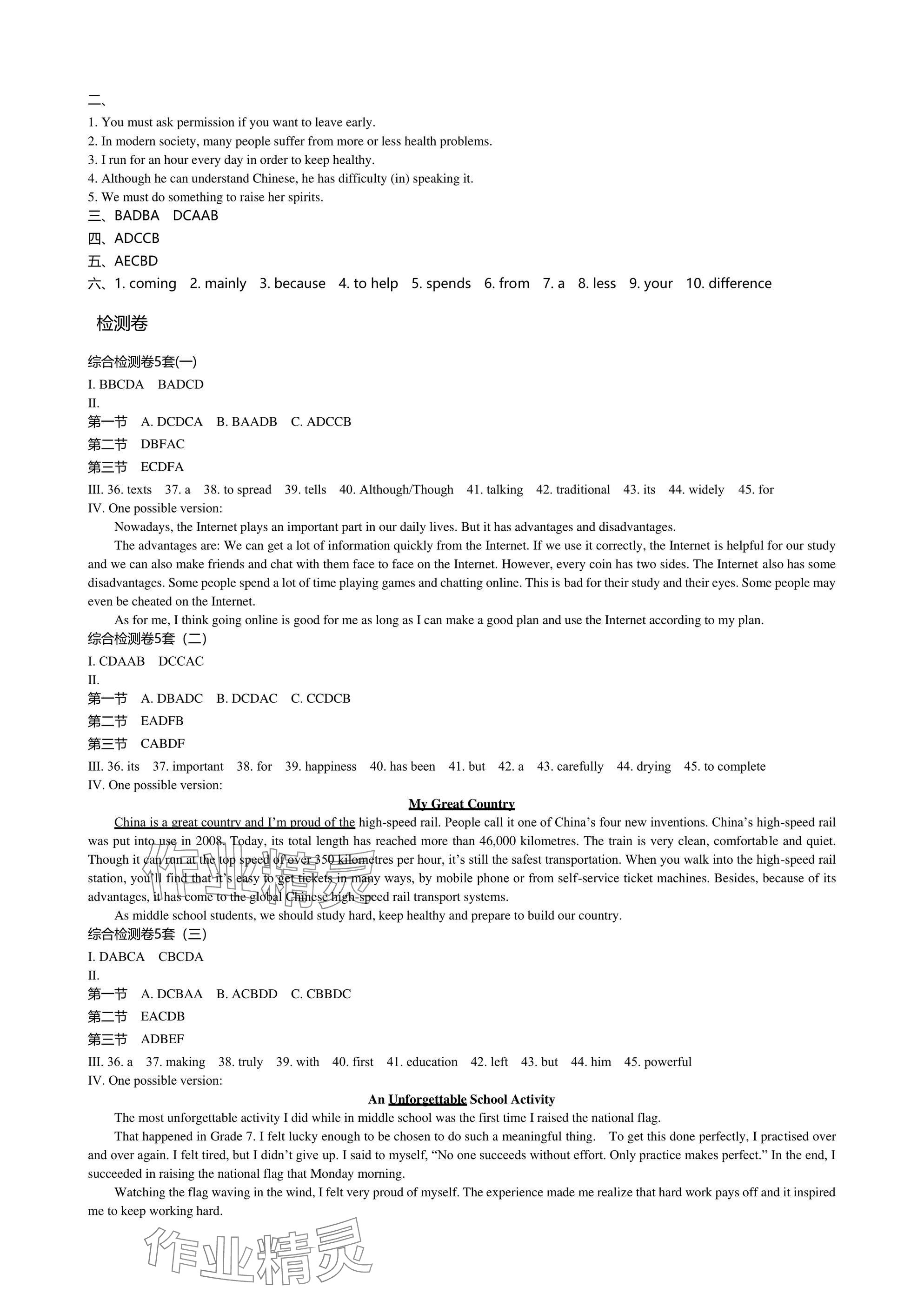 注:目前有些书本章节名称可能整理的还不是很完善,但都是按照顺序排列的,请同学们按照顺序仔细查找。练习册 2025年春如金卷初中英语寒假作业本八年级 答案主要是用来给同学们做完题方便对答案用的,请勿直接抄袭。