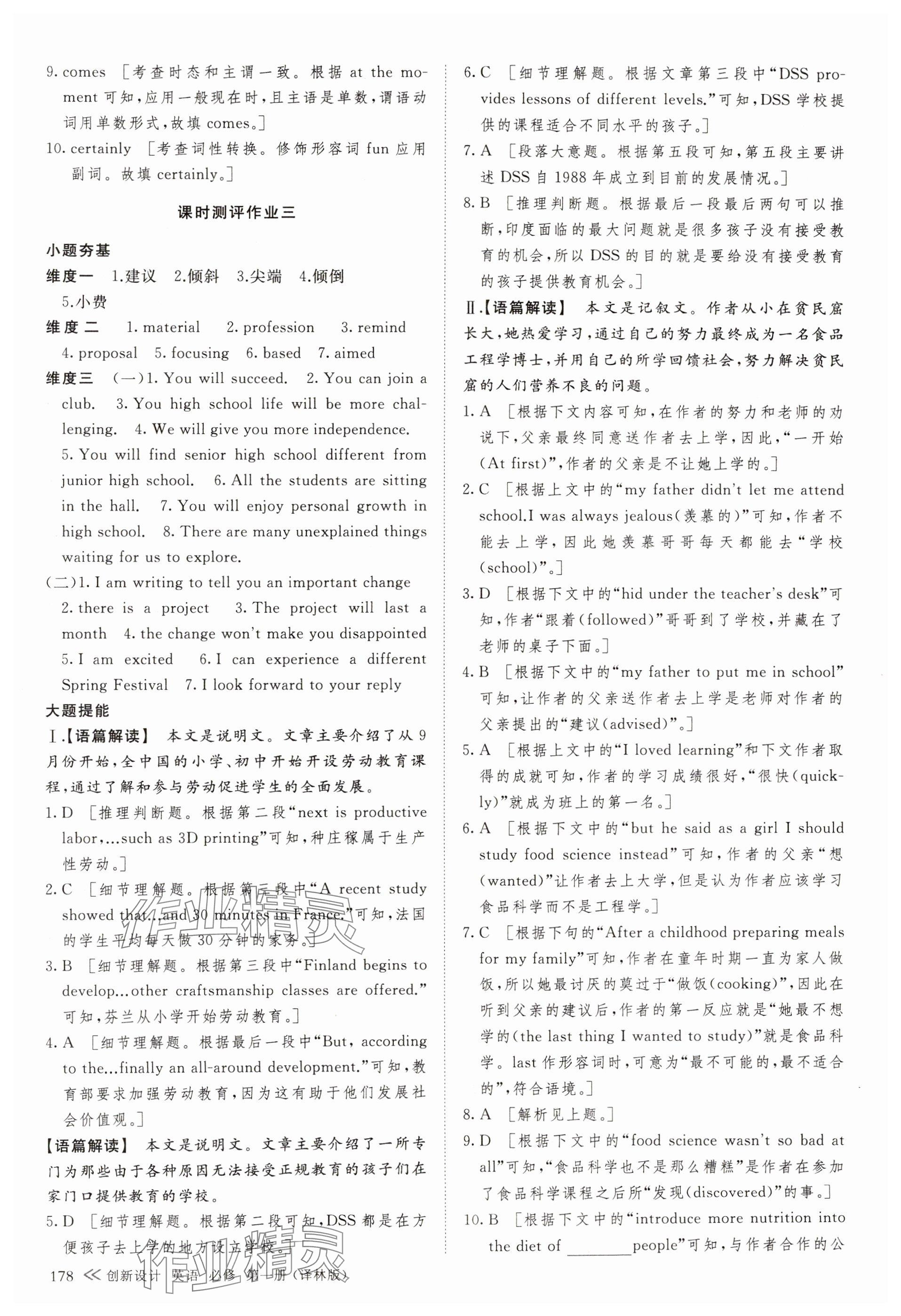 注:目前有些书本章节名称可能整理的还不是很完善,但都是按照顺序排列的,请同学们按照顺序仔细查找。练习册 2024年创新设计高中英语必修第一册译林版 答案主要是用来给同学们做完题方便对答案用的,请勿直接抄袭。