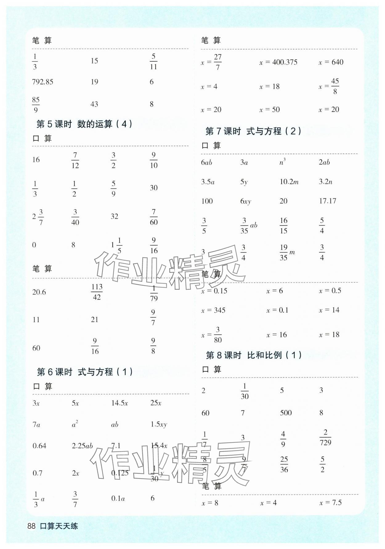 注:目前有些书本章节名称可能整理的还不是很完善,但都是按照顺序排列的,请同学们按照顺序仔细查找。练习册 2025年口算天天练天津人民出版社六年级数学下册人教版 答案主要是用来给同学们做完题方便对答案用的,请勿直接抄袭。