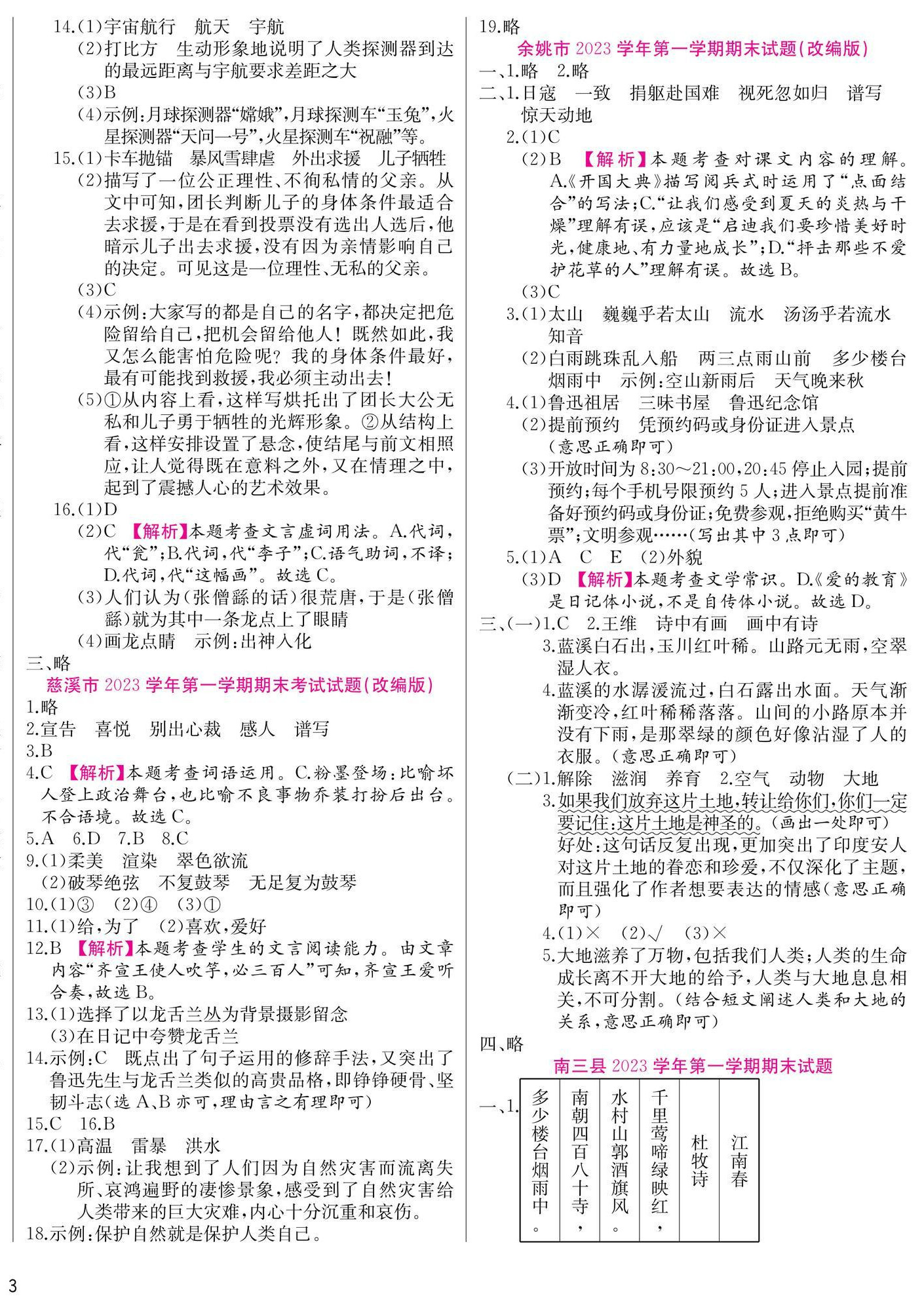 注:目前有些书本章节名称可能整理的还不是很完善,但都是按照顺序排列的,请同学们按照顺序仔细查找。练习册 2024年期末真题汇编精选卷六年级语文上册人教版宁波专版 答案主要是用来给同学们做完题方便对答案用的,请勿直接抄袭。