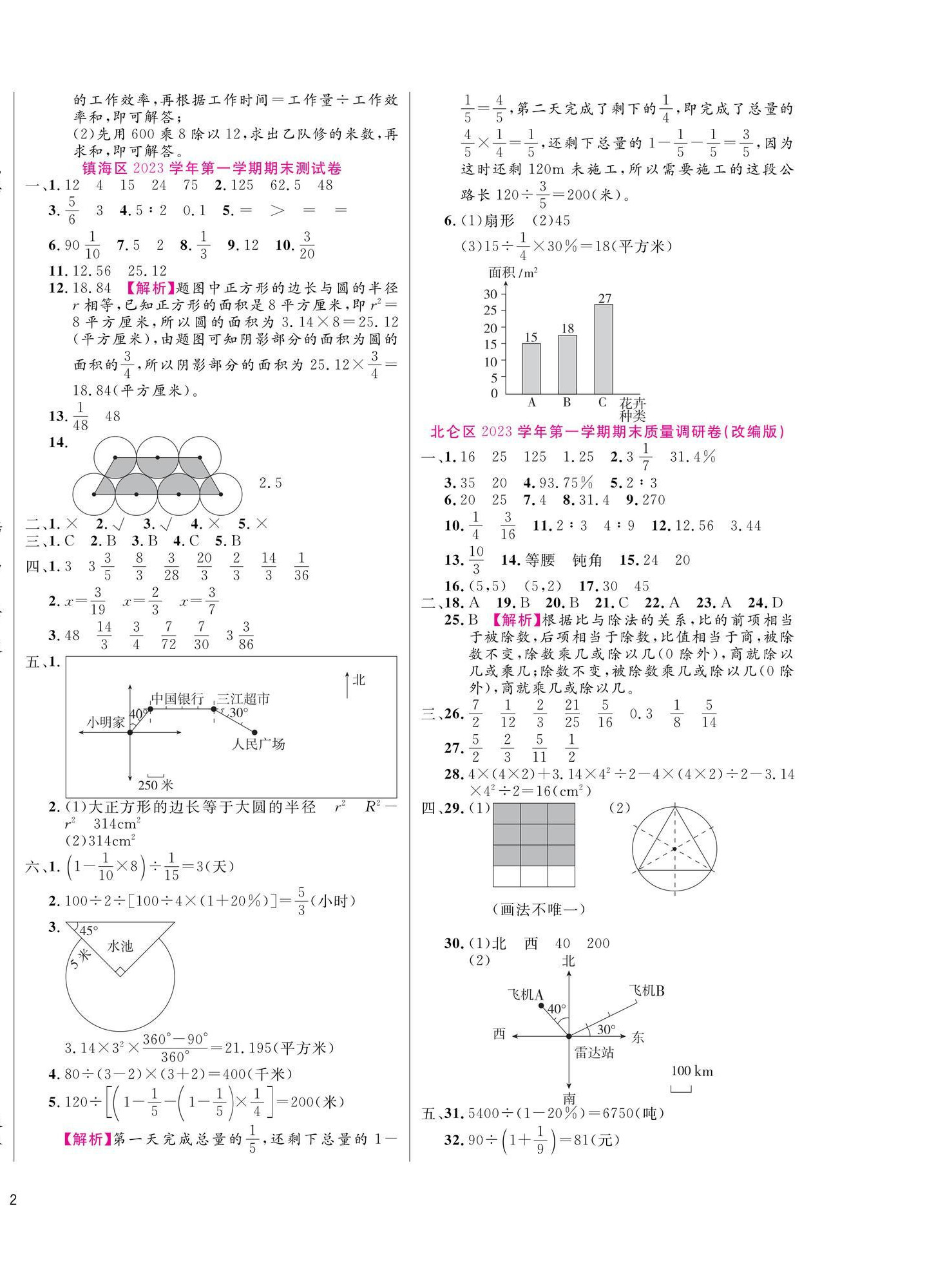 注:目前有些书本章节名称可能整理的还不是很完善,但都是按照顺序排列的,请同学们按照顺序仔细查找。练习册 2024年期末真题汇编精选卷六年级数学上册人教版宁波专版 答案主要是用来给同学们做完题方便对答案用的,请勿直接抄袭。