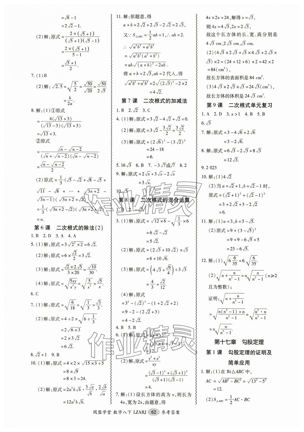 注:目前有些书本章节名称可能整理的还不是很完善,但都是按照顺序排列的,请同学们按照顺序仔细查找。练习册 2025年零障碍导教导学案八年级数学下册人教版 答案主要是用来给同学们做完题方便对答案用的,请勿直接抄袭。