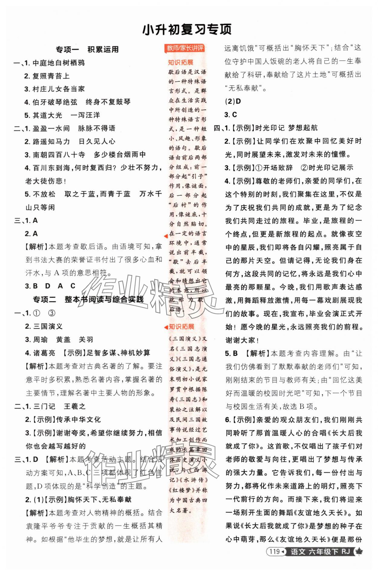 注:目前有些书本章节名称可能整理的还不是很完善,但都是按照顺序排列的,请同学们按照顺序仔细查找。练习册 2025年小学必刷题六年级语文下册人教版 答案主要是用来给同学们做完题方便对答案用的,请勿直接抄袭。