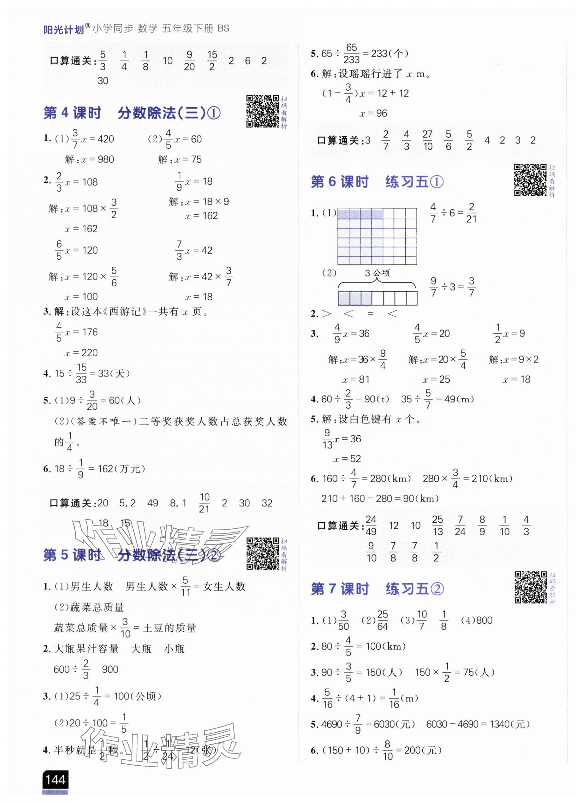 注:目前有些书本章节名称可能整理的还不是很完善,但都是按照顺序排列的,请同学们按照顺序仔细查找。练习册 2025年阳光计划小学同步五年级数学下册北师大版 答案主要是用来给同学们做完题方便对答案用的,请勿直接抄袭。