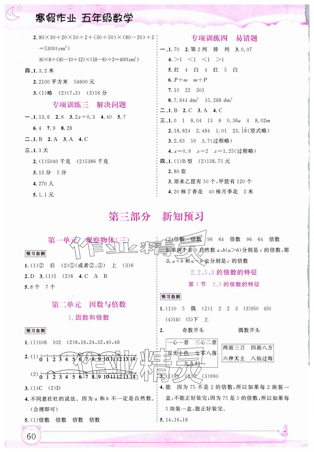 注:目前有些书本章节名称可能整理的还不是很完善,但都是按照顺序排列的,请同学们按照顺序仔细查找。练习册 2025年文轩图书假期生活指导寒五年级数学 答案主要是用来给同学们做完题方便对答案用的,请勿直接抄袭。