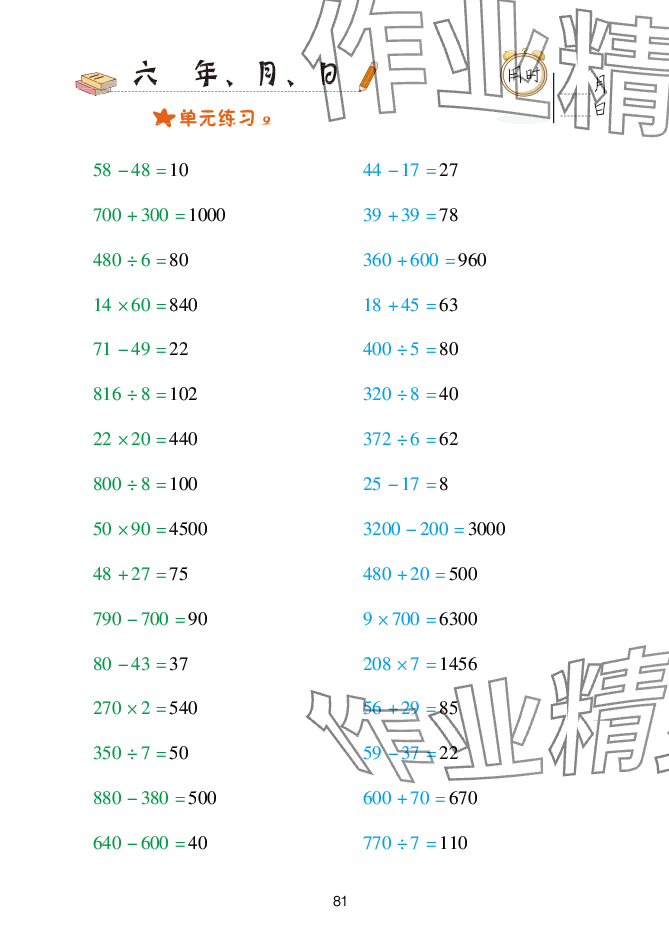 注:目前有些书本章节名称可能整理的还不是很完善,但都是按照顺序排列的,请同学们按照顺序仔细查找。练习册 2025年口算天天练青岛出版社三年级数学下册青岛版 答案主要是用来给同学们做完题方便对答案用的,请勿直接抄袭。