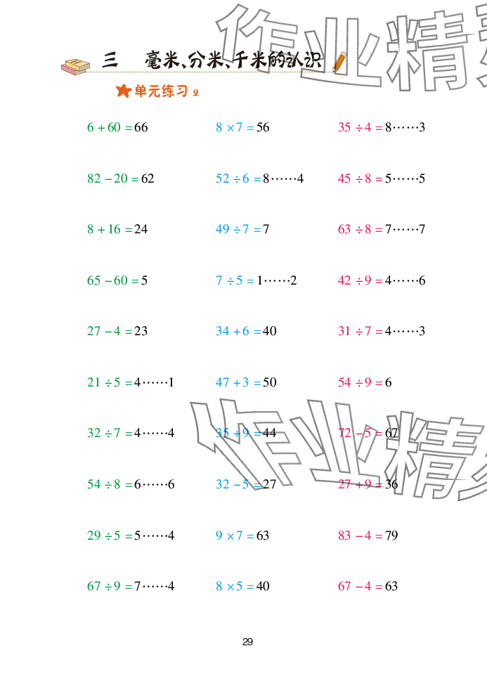 注:目前有些书本章节名称可能整理的还不是很完善,但都是按照顺序排列的,请同学们按照顺序仔细查找。练习册 2025年口算天天练青岛出版社二年级数学下册青岛版 答案主要是用来给同学们做完题方便对答案用的,请勿直接抄袭。