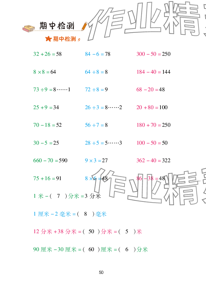 注:目前有些书本章节名称可能整理的还不是很完善,但都是按照顺序排列的,请同学们按照顺序仔细查找。练习册 2025年口算天天练青岛出版社二年级数学下册青岛版 答案主要是用来给同学们做完题方便对答案用的,请勿直接抄袭。