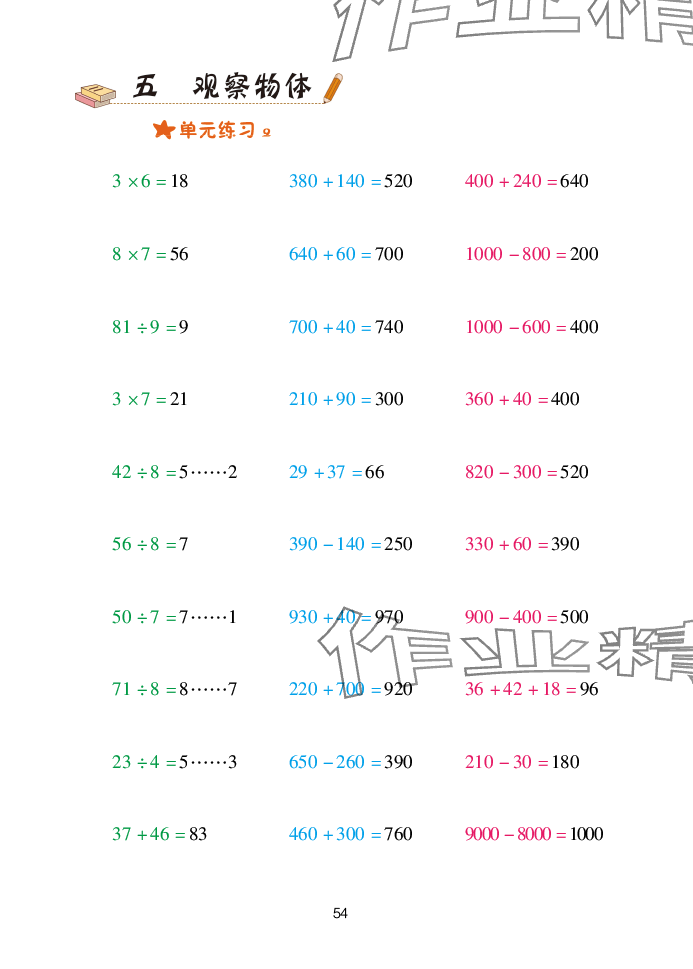 注:目前有些书本章节名称可能整理的还不是很完善,但都是按照顺序排列的,请同学们按照顺序仔细查找。练习册 2025年口算天天练青岛出版社二年级数学下册青岛版 答案主要是用来给同学们做完题方便对答案用的,请勿直接抄袭。