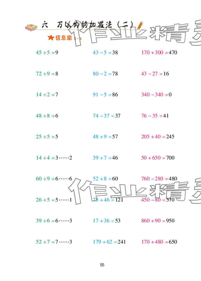 注:目前有些书本章节名称可能整理的还不是很完善,但都是按照顺序排列的,请同学们按照顺序仔细查找。练习册 2025年口算天天练青岛出版社二年级数学下册青岛版 答案主要是用来给同学们做完题方便对答案用的,请勿直接抄袭。