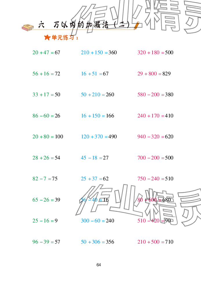 注:目前有些书本章节名称可能整理的还不是很完善,但都是按照顺序排列的,请同学们按照顺序仔细查找。练习册 2025年口算天天练青岛出版社二年级数学下册青岛版 答案主要是用来给同学们做完题方便对答案用的,请勿直接抄袭。
