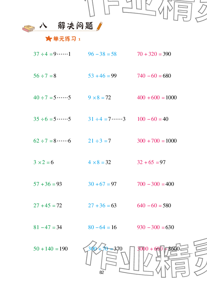 注:目前有些书本章节名称可能整理的还不是很完善,但都是按照顺序排列的,请同学们按照顺序仔细查找。练习册 2025年口算天天练青岛出版社二年级数学下册青岛版 答案主要是用来给同学们做完题方便对答案用的,请勿直接抄袭。