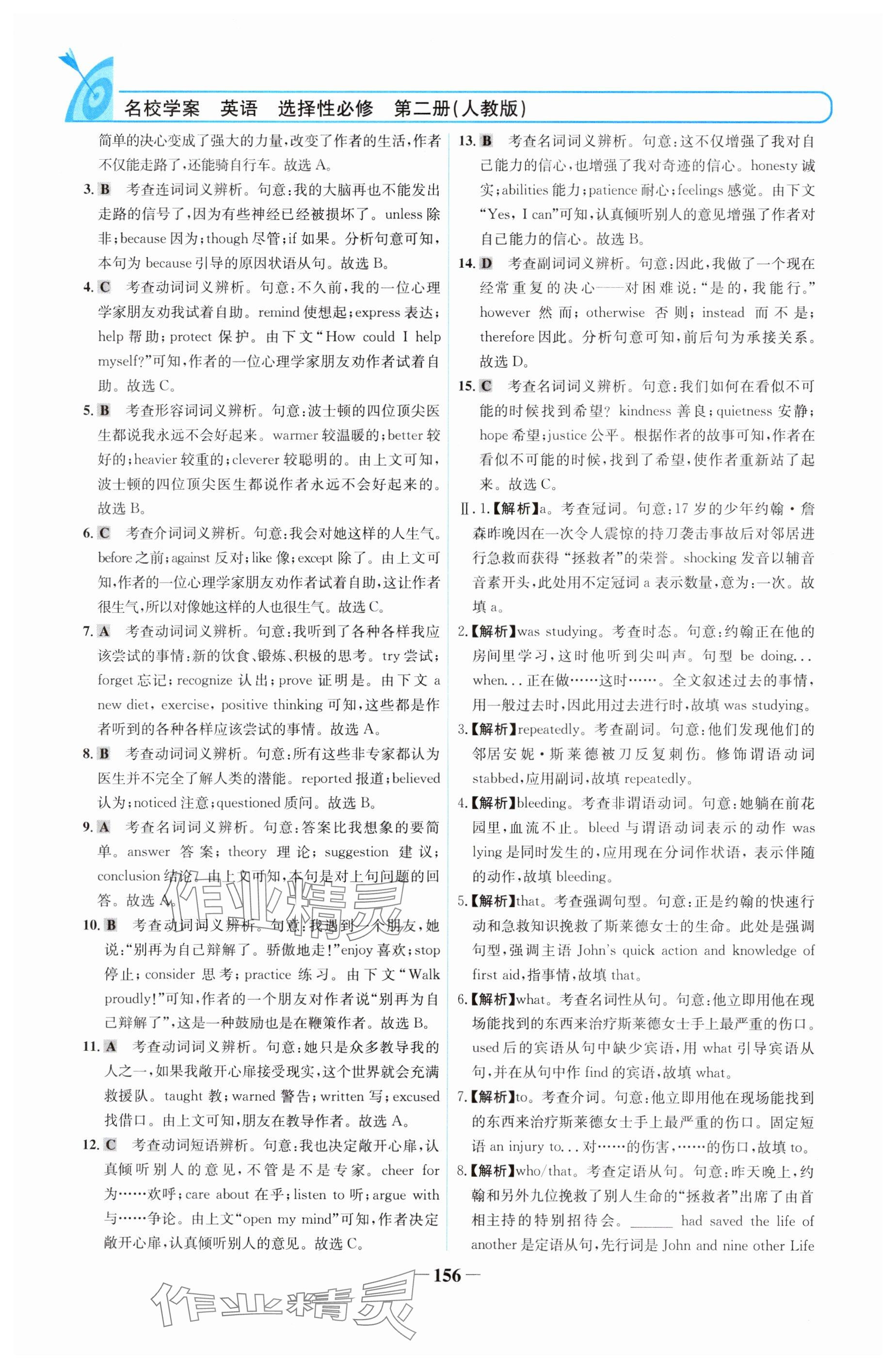 注:目前有些书本章节名称可能整理的还不是很完善,但都是按照顺序排列的,请同学们按照顺序仔细查找。练习册 2024年名校学案高中英语选择性必修第二册人教版 答案主要是用来给同学们做完题方便对答案用的,请勿直接抄袭。
