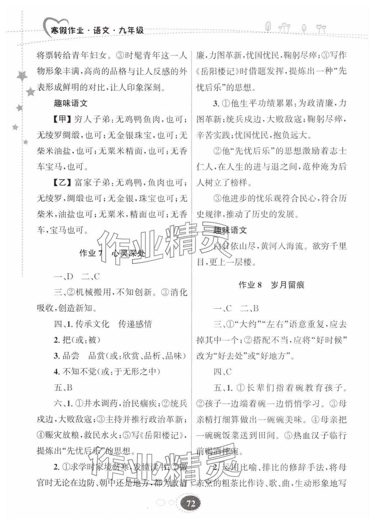 注:目前有些书本章节名称可能整理的还不是很完善,但都是按照顺序排列的,请同学们按照顺序仔细查找。练习册 2025年寒假作业甘肃教育出版社九年级语文 答案主要是用来给同学们做完题方便对答案用的,请勿直接抄袭。
