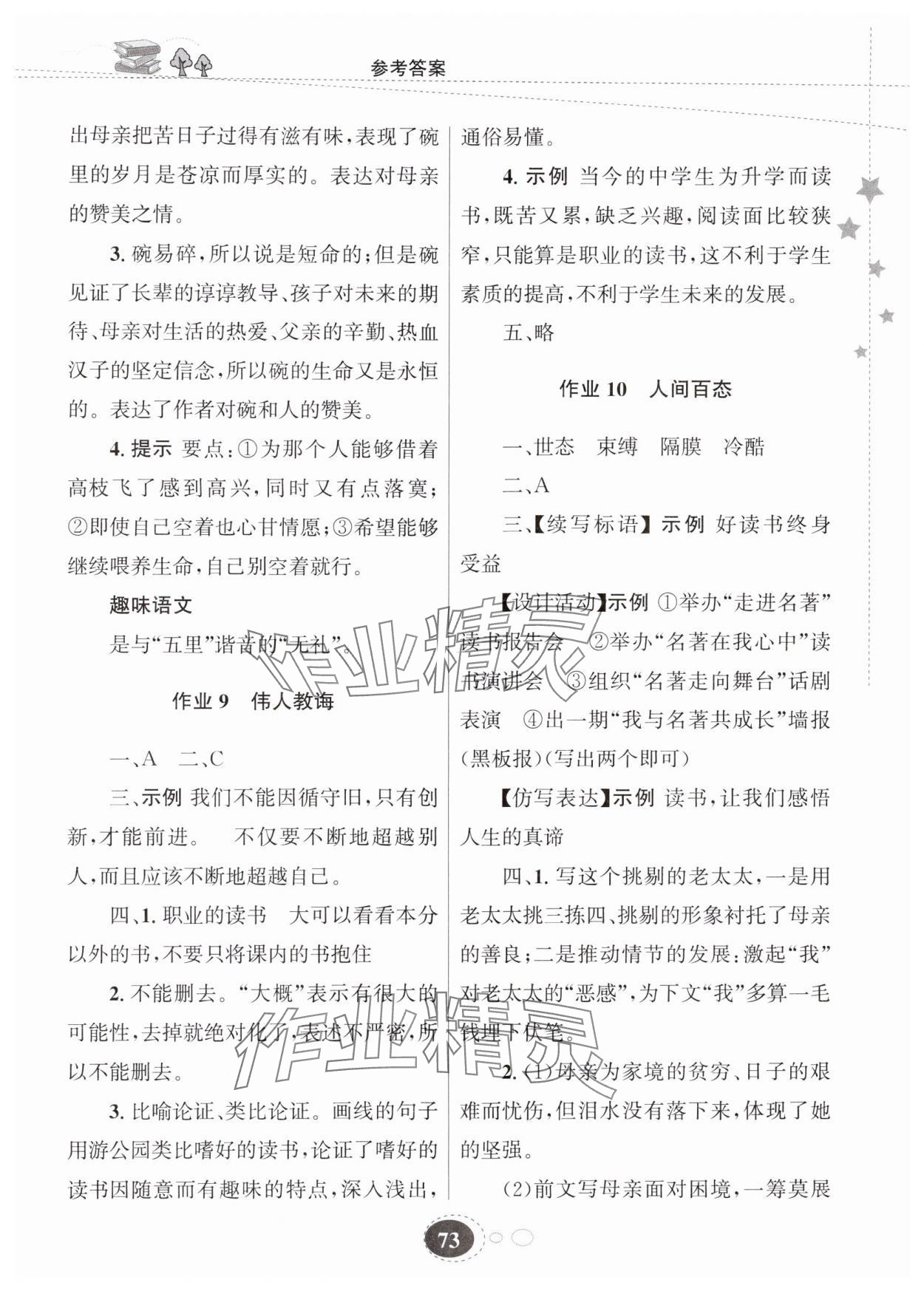注:目前有些书本章节名称可能整理的还不是很完善,但都是按照顺序排列的,请同学们按照顺序仔细查找。练习册 2025年寒假作业甘肃教育出版社九年级语文 答案主要是用来给同学们做完题方便对答案用的,请勿直接抄袭。