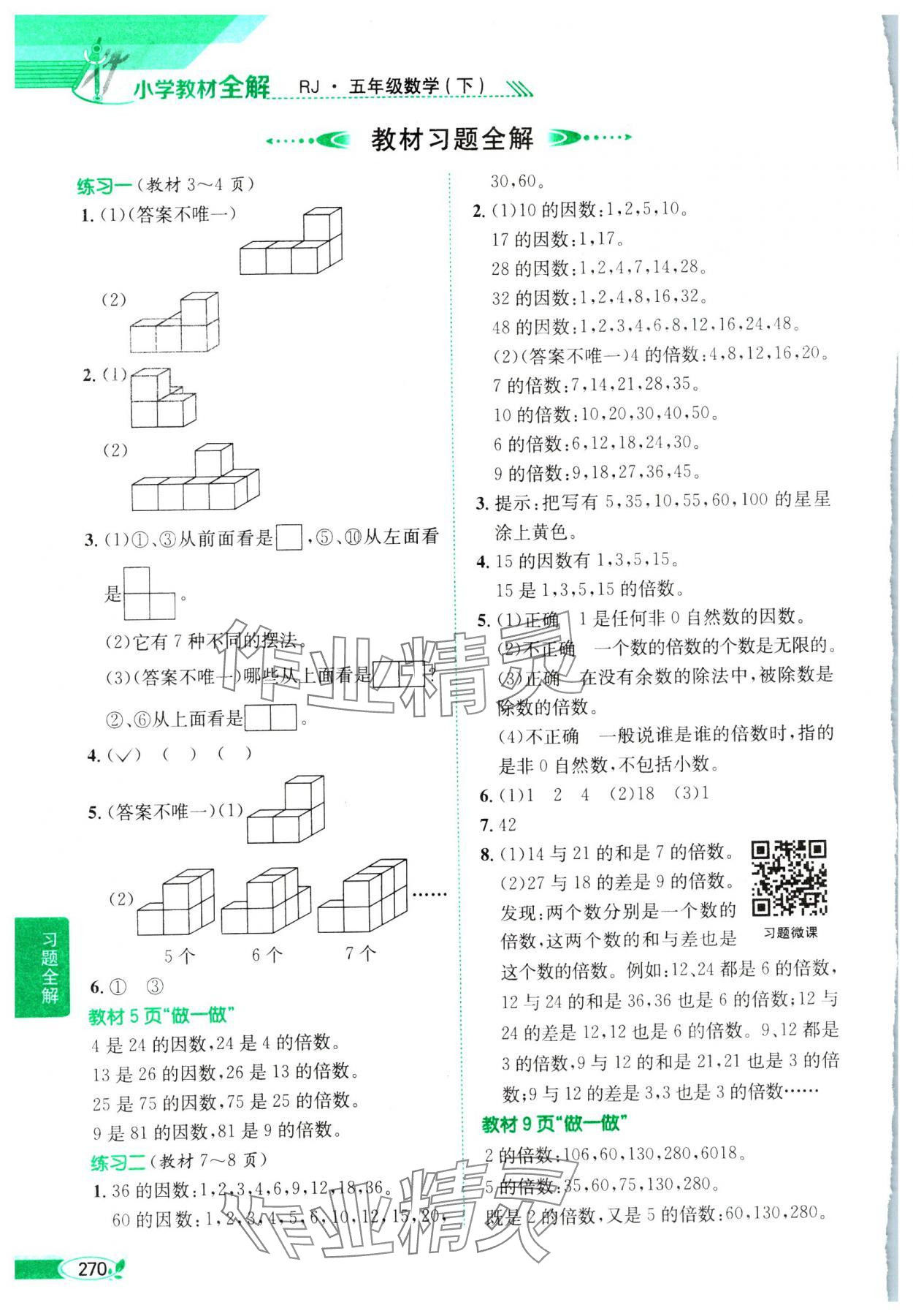 注:目前有些书本章节名称可能整理的还不是很完善,但都是按照顺序排列的,请同学们按照顺序仔细查找。练习册 2025年教材全解五年级数学下册人教版 答案主要是用来给同学们做完题方便对答案用的,请勿直接抄袭。