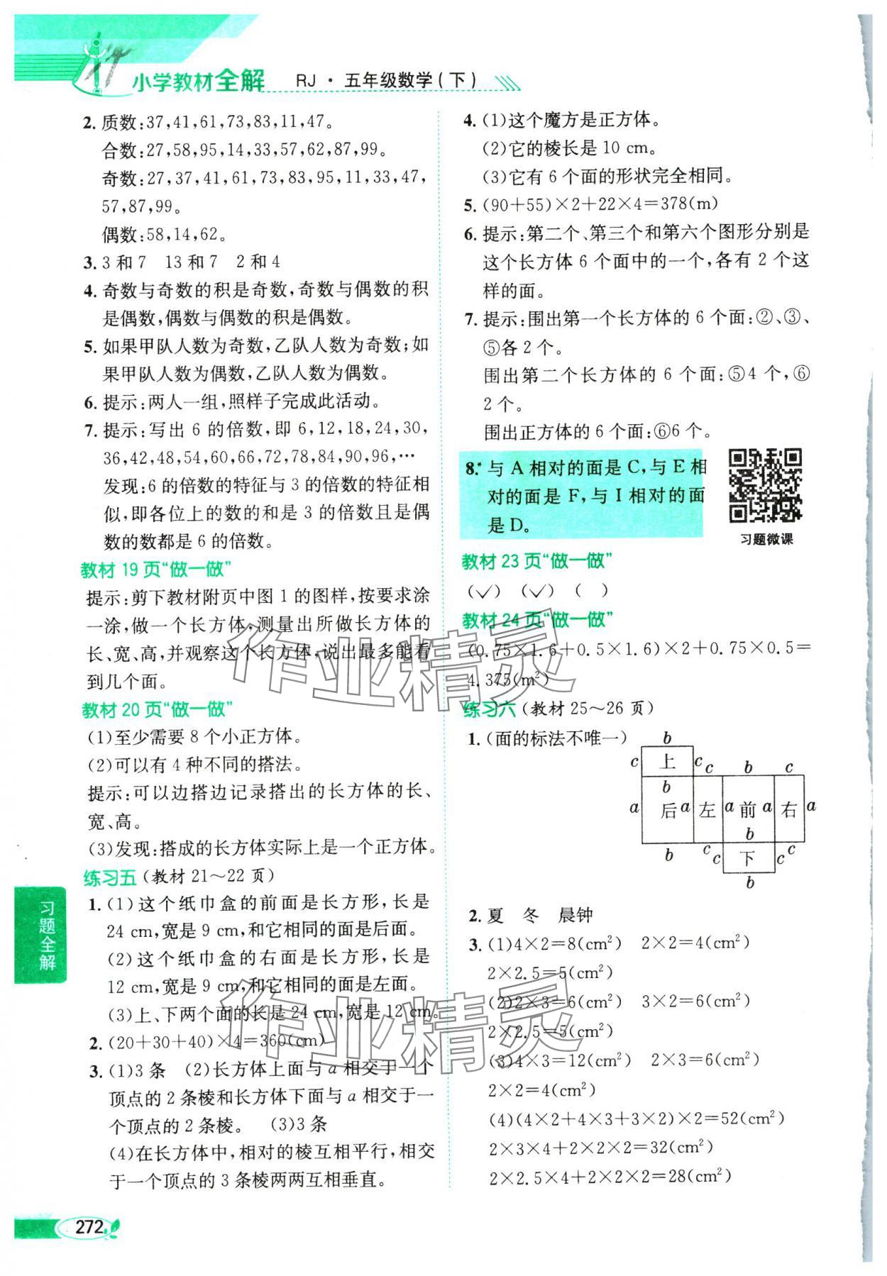 注:目前有些书本章节名称可能整理的还不是很完善,但都是按照顺序排列的,请同学们按照顺序仔细查找。练习册 2025年教材全解五年级数学下册人教版 答案主要是用来给同学们做完题方便对答案用的,请勿直接抄袭。