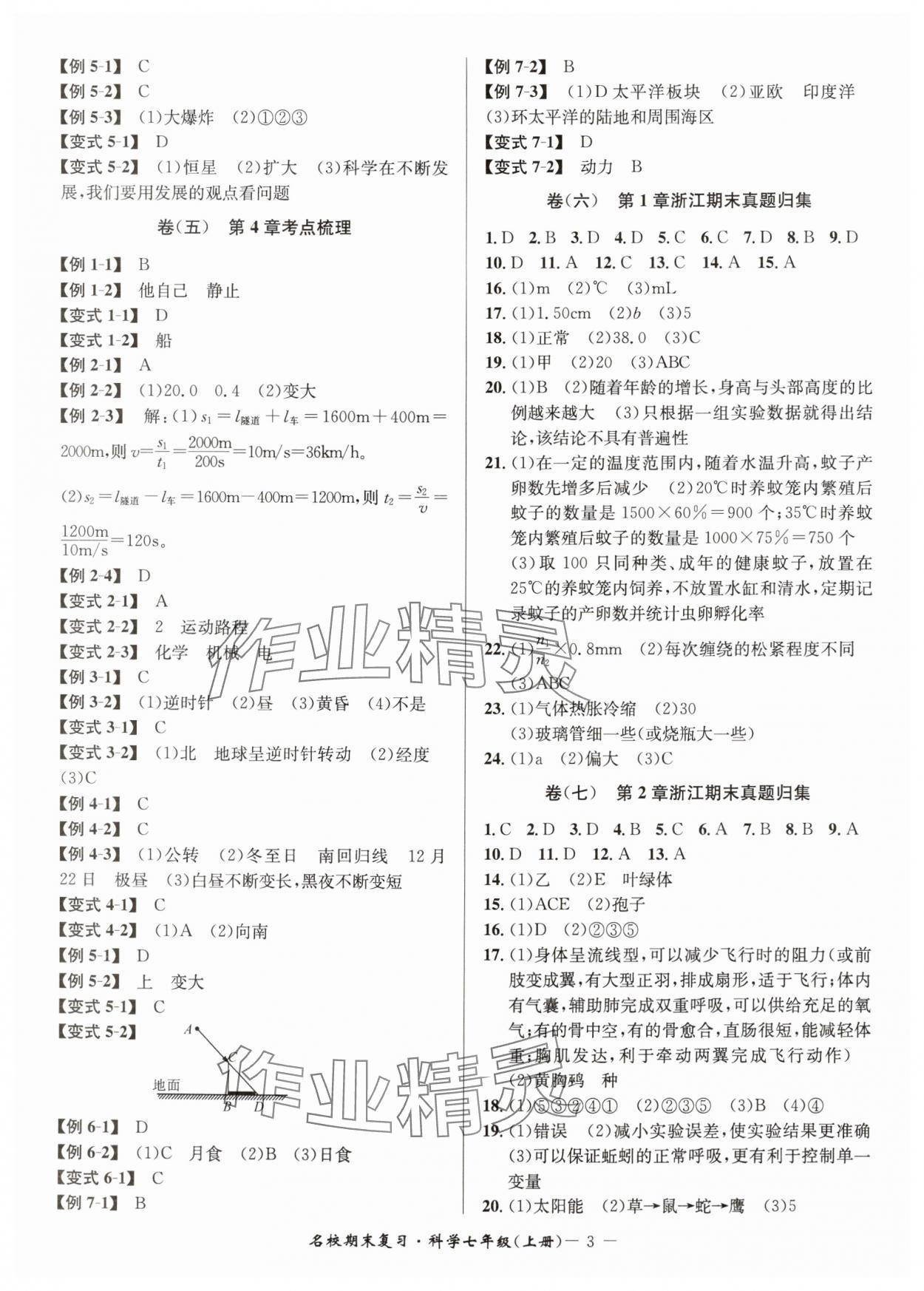 注:目前有些书本章节名称可能整理的还不是很完善,但都是按照顺序排列的,请同学们按照顺序仔细查找。练习册 2024年名校期末复习宝典七年级科学上册浙教版 答案主要是用来给同学们做完题方便对答案用的,请勿直接抄袭。