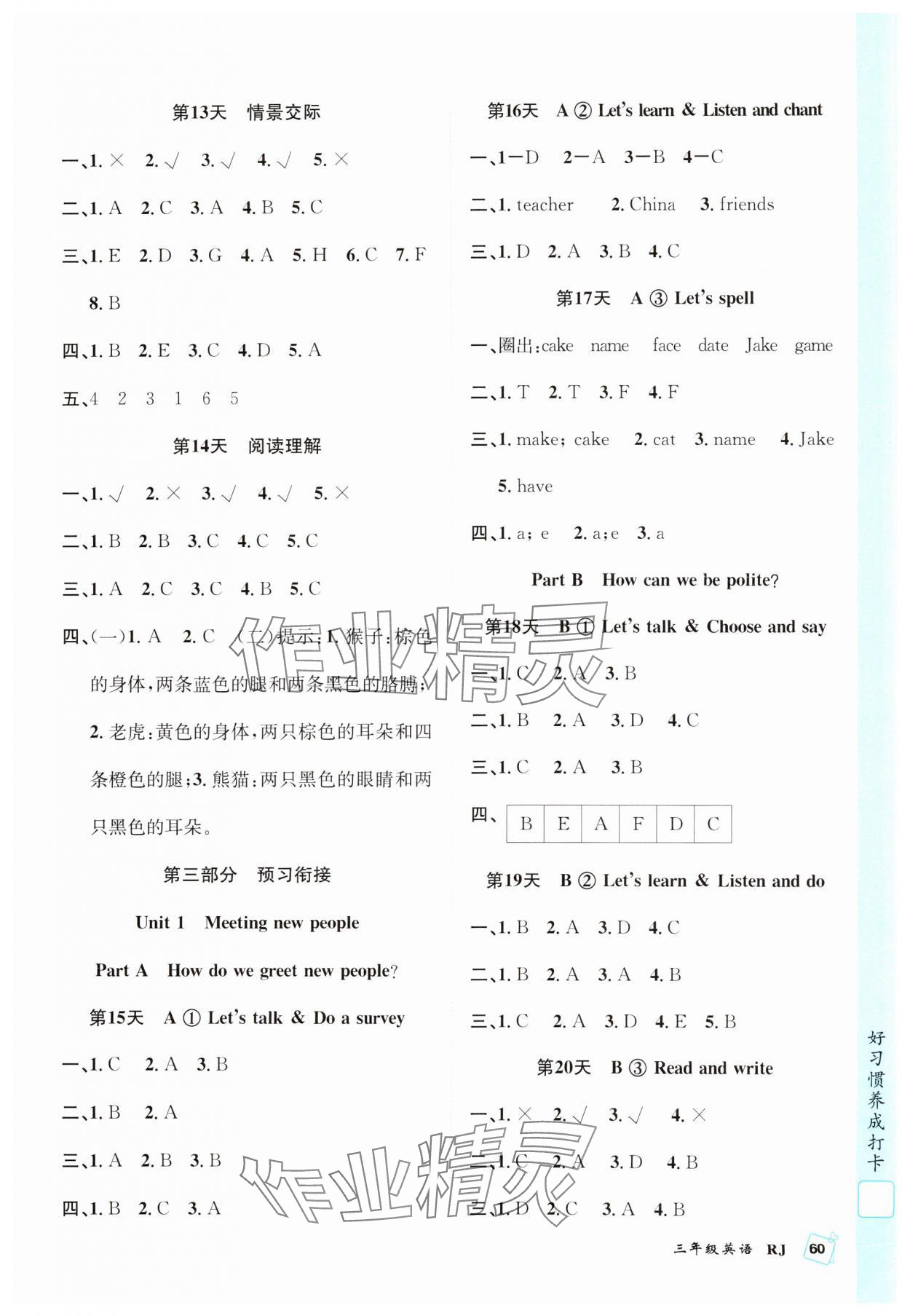 注:目前有些书本章节名称可能整理的还不是很完善,但都是按照顺序排列的,请同学们按照顺序仔细查找。练习册 2025年赢在假期期末加寒假三年级英语人教版 答案主要是用来给同学们做完题方便对答案用的,请勿直接抄袭。