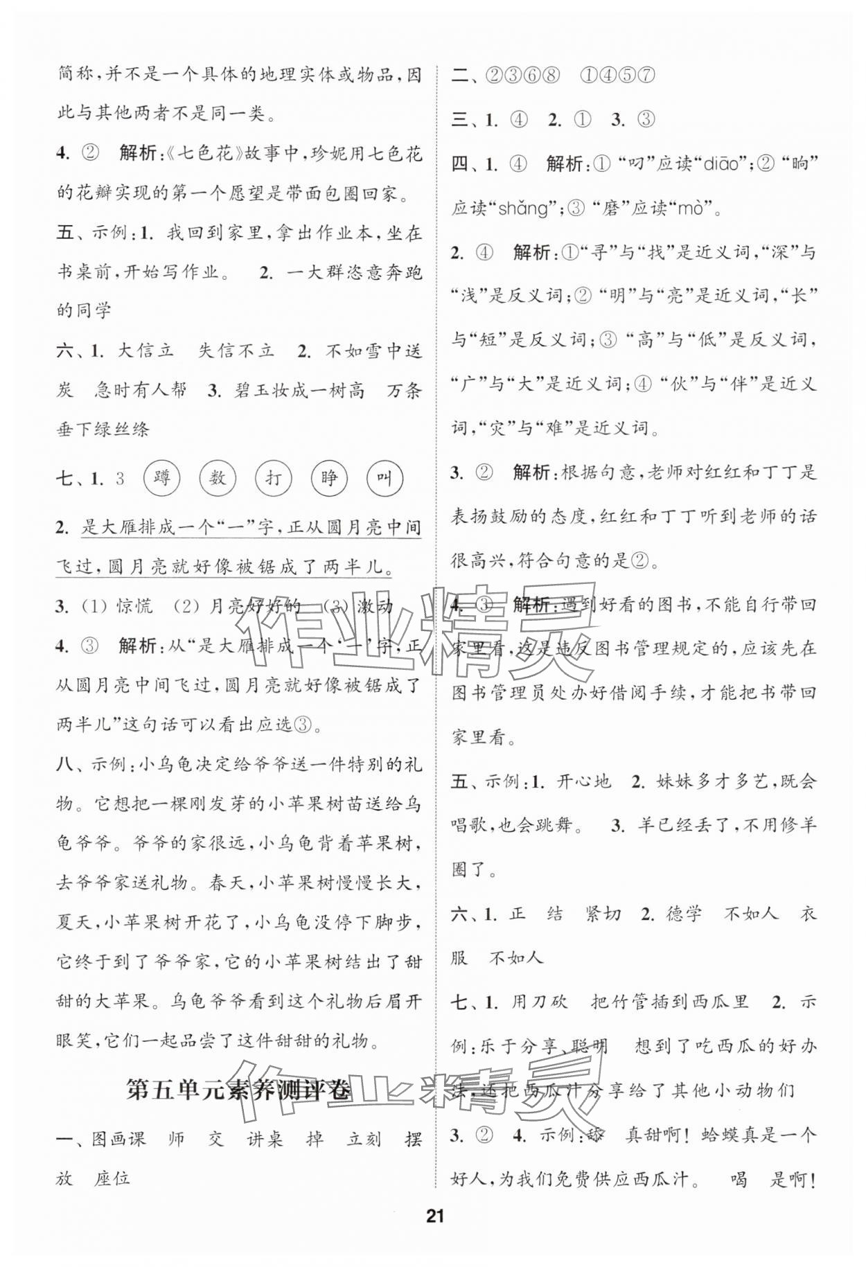 注:目前有些书本章节名称可能整理的还不是很完善,但都是按照顺序排列的,请同学们按照顺序仔细查找。练习册 2025年通城学典课时作业本二年级语文下册人教版浙江专版 答案主要是用来给同学们做完题方便对答案用的,请勿直接抄袭。