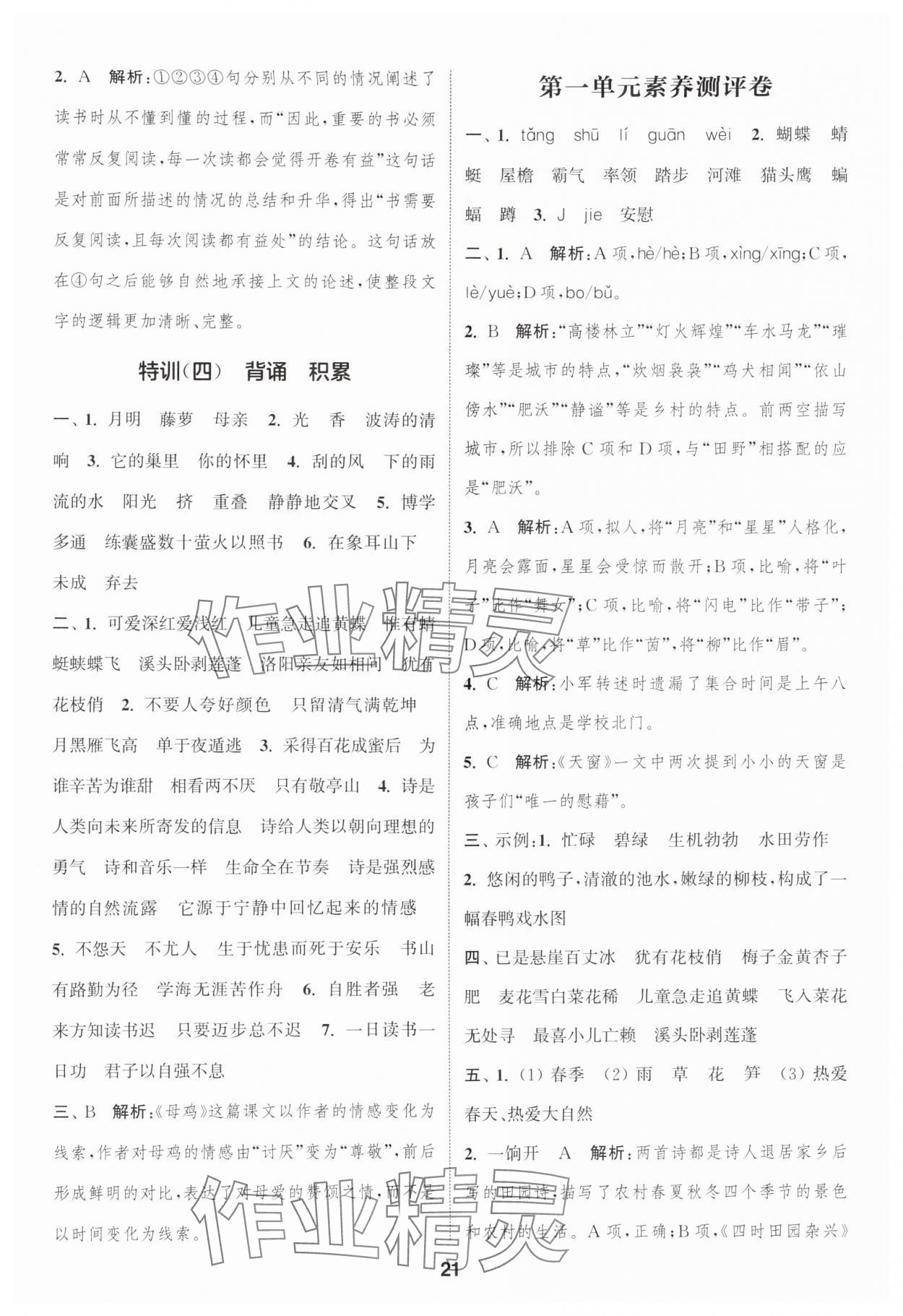 注:目前有些书本章节名称可能整理的还不是很完善,但都是按照顺序排列的,请同学们按照顺序仔细查找。练习册 2025年通城学典课时作业本四年级语文下册人教版浙江专版 答案主要是用来给同学们做完题方便对答案用的,请勿直接抄袭。