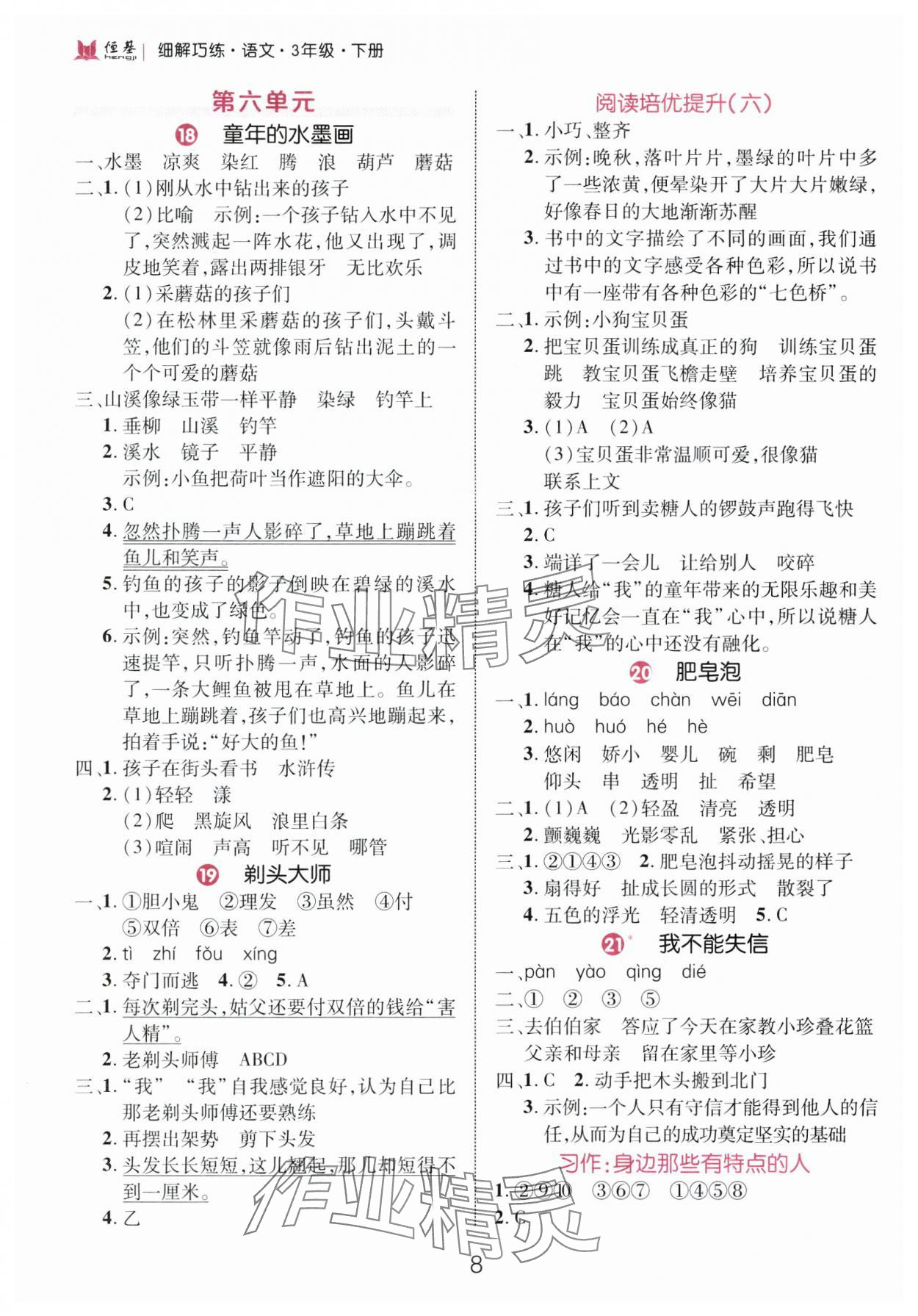 注:目前有些书本章节名称可能整理的还不是很完善,但都是按照顺序排列的,请同学们按照顺序仔细查找。练习册 2025年细解巧练三年级语文下册人教版 答案主要是用来给同学们做完题方便对答案用的,请勿直接抄袭。