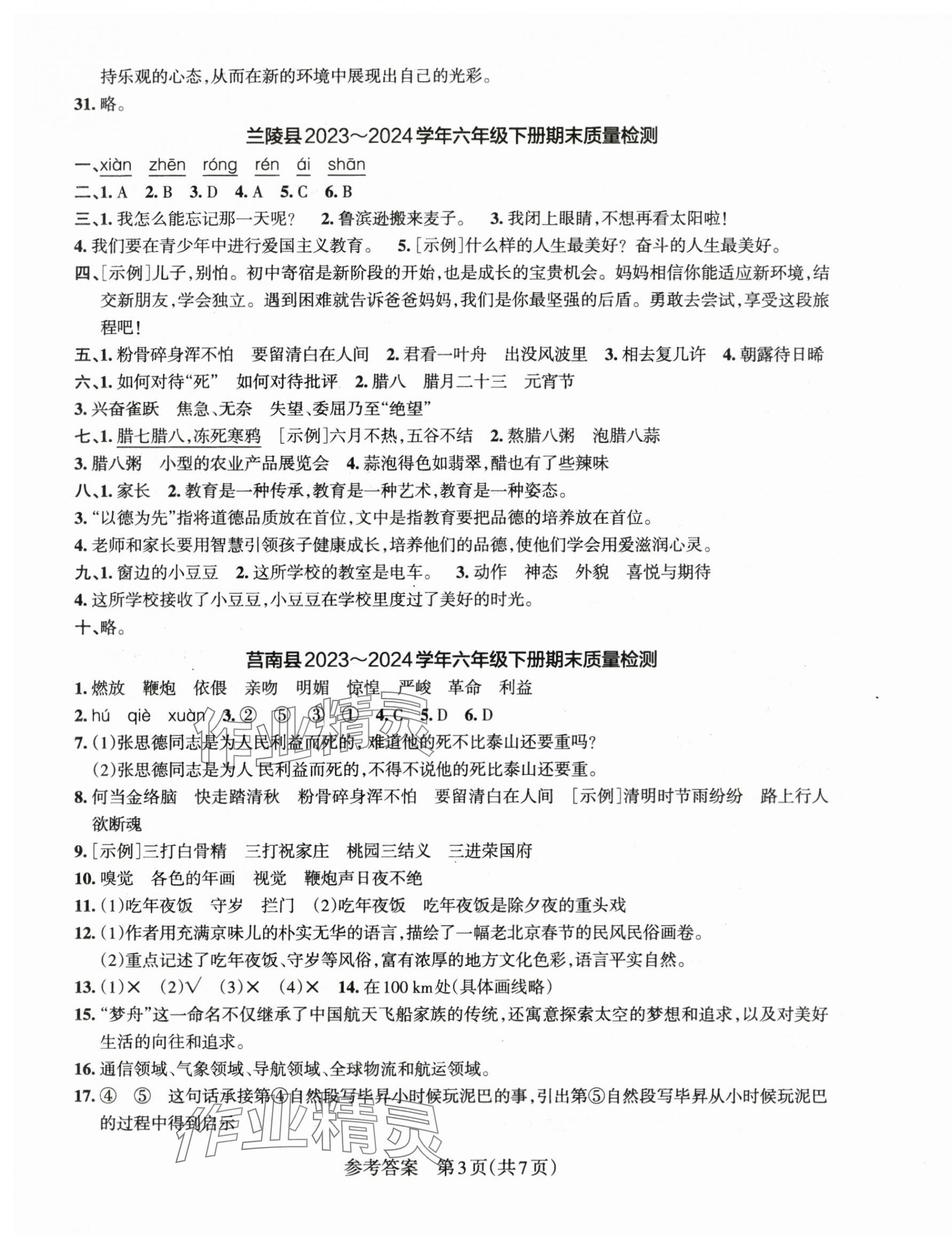 注:目前有些书本章节名称可能整理的还不是很完善,但都是按照顺序排列的,请同学们按照顺序仔细查找。练习册 2025年细解巧练六年级语文下册人教版 答案主要是用来给同学们做完题方便对答案用的,请勿直接抄袭。