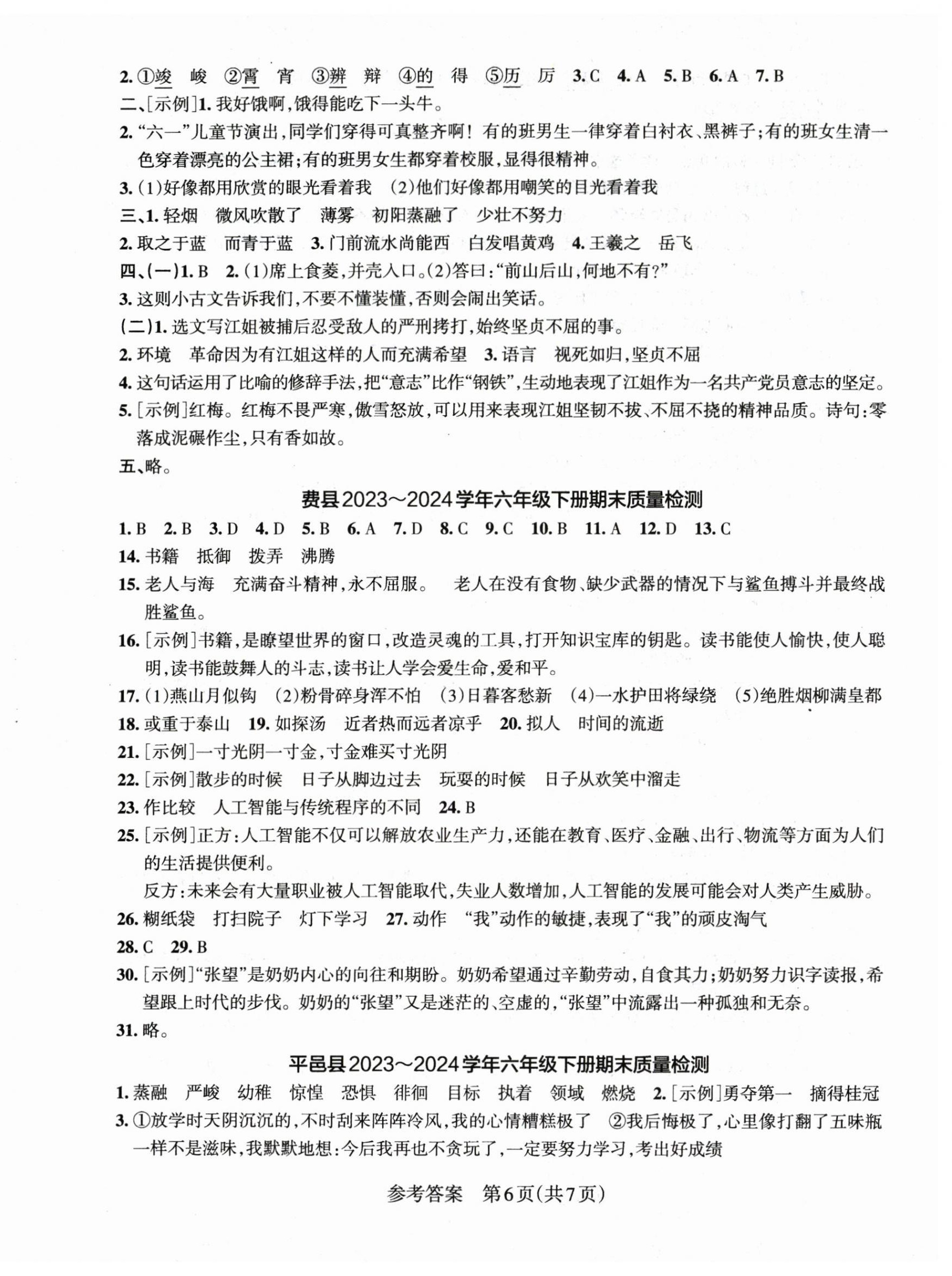 注:目前有些书本章节名称可能整理的还不是很完善,但都是按照顺序排列的,请同学们按照顺序仔细查找。练习册 2025年细解巧练六年级语文下册人教版 答案主要是用来给同学们做完题方便对答案用的,请勿直接抄袭。