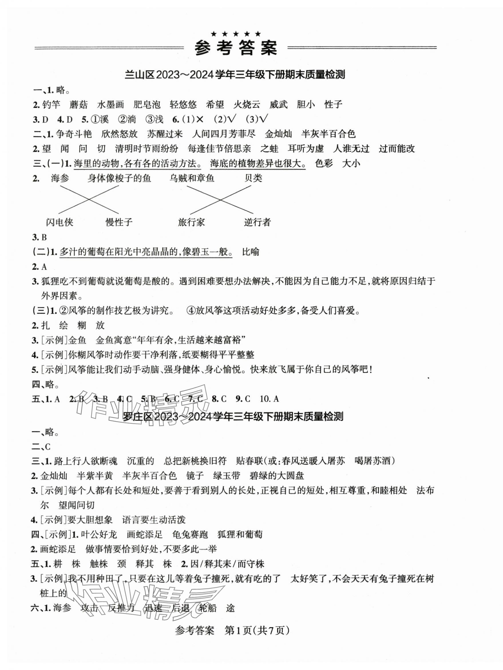 注:目前有些书本章节名称可能整理的还不是很完善,但都是按照顺序排列的,请同学们按照顺序仔细查找。练习册 2025年细解巧练三年级语文下册人教版 答案主要是用来给同学们做完题方便对答案用的,请勿直接抄袭。