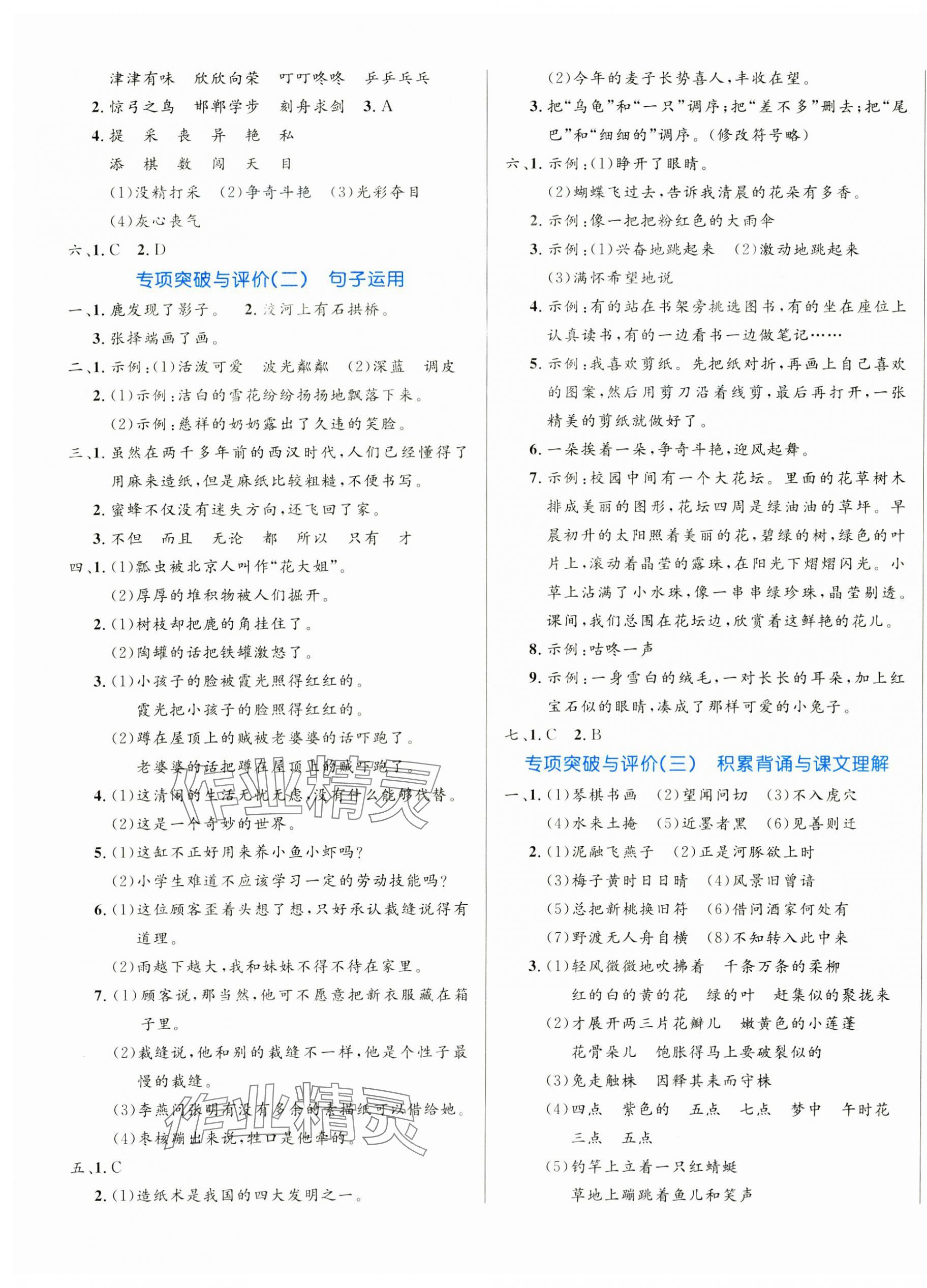 注:目前有些书本章节名称可能整理的还不是很完善,但都是按照顺序排列的,请同学们按照顺序仔细查找。练习册 2025年黄冈名卷三年级语文下册人教版 答案主要是用来给同学们做完题方便对答案用的,请勿直接抄袭。