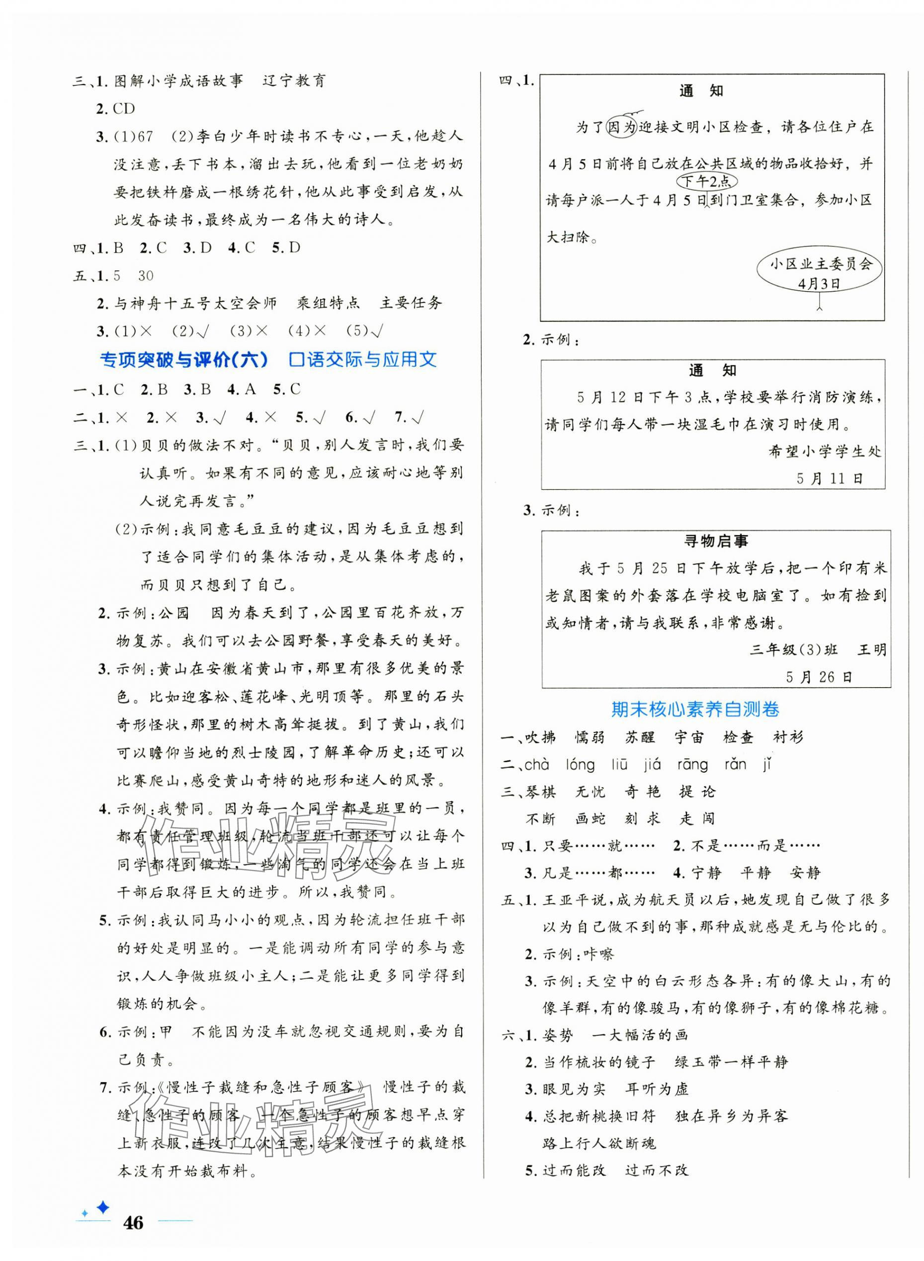 注:目前有些书本章节名称可能整理的还不是很完善,但都是按照顺序排列的,请同学们按照顺序仔细查找。练习册 2025年黄冈名卷三年级语文下册人教版 答案主要是用来给同学们做完题方便对答案用的,请勿直接抄袭。