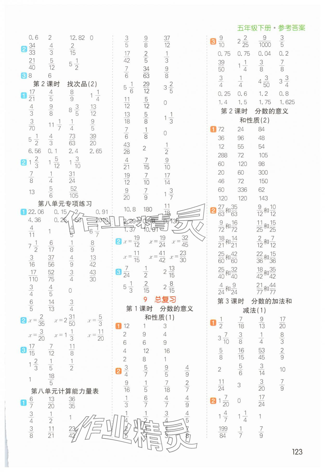 注:目前有些书本章节名称可能整理的还不是很完善,但都是按照顺序排列的,请同学们按照顺序仔细查找。练习册 2025年七彩课堂计算天天练五年级数学下册人教版 答案主要是用来给同学们做完题方便对答案用的,请勿直接抄袭。
