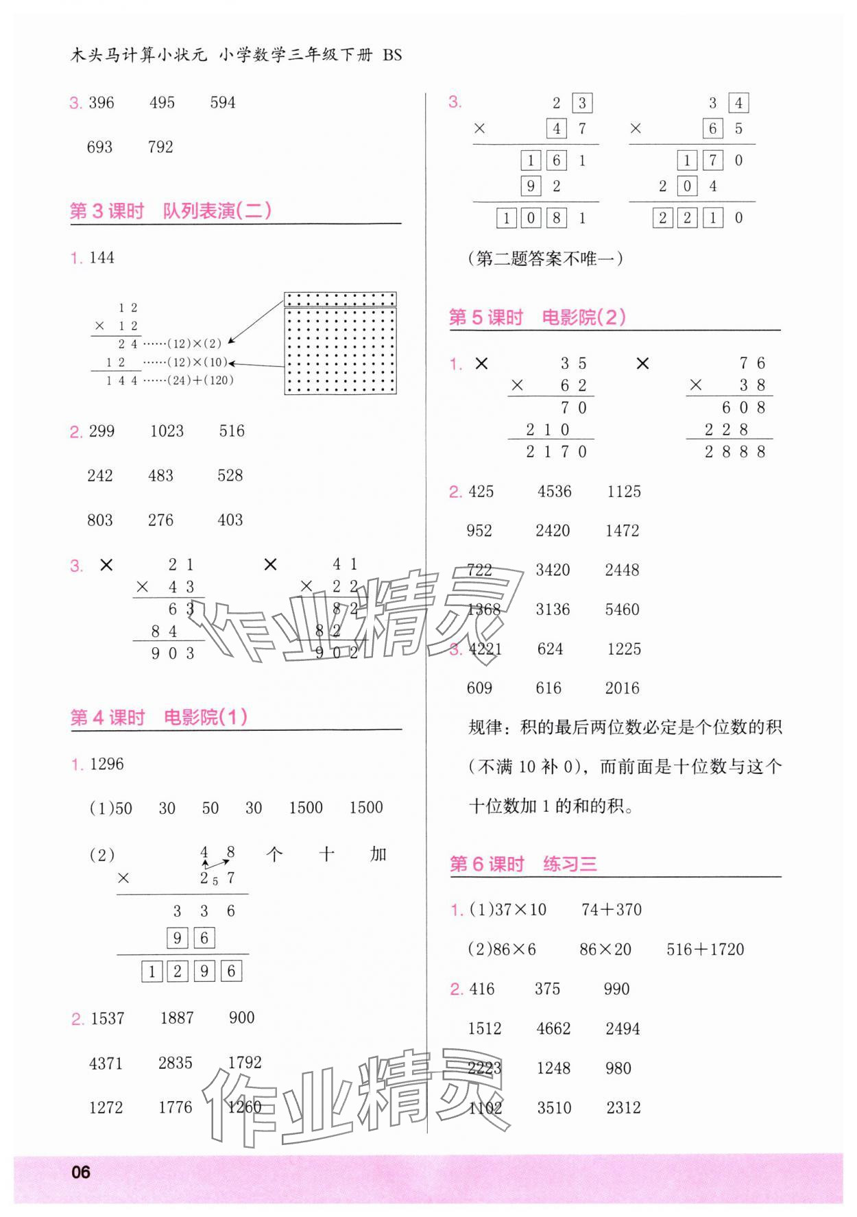 注:目前有些书本章节名称可能整理的还不是很完善,但都是按照顺序排列的,请同学们按照顺序仔细查找。练习册 2025年木头马计算小状元三年级数学下册北师大版 答案主要是用来给同学们做完题方便对答案用的,请勿直接抄袭。