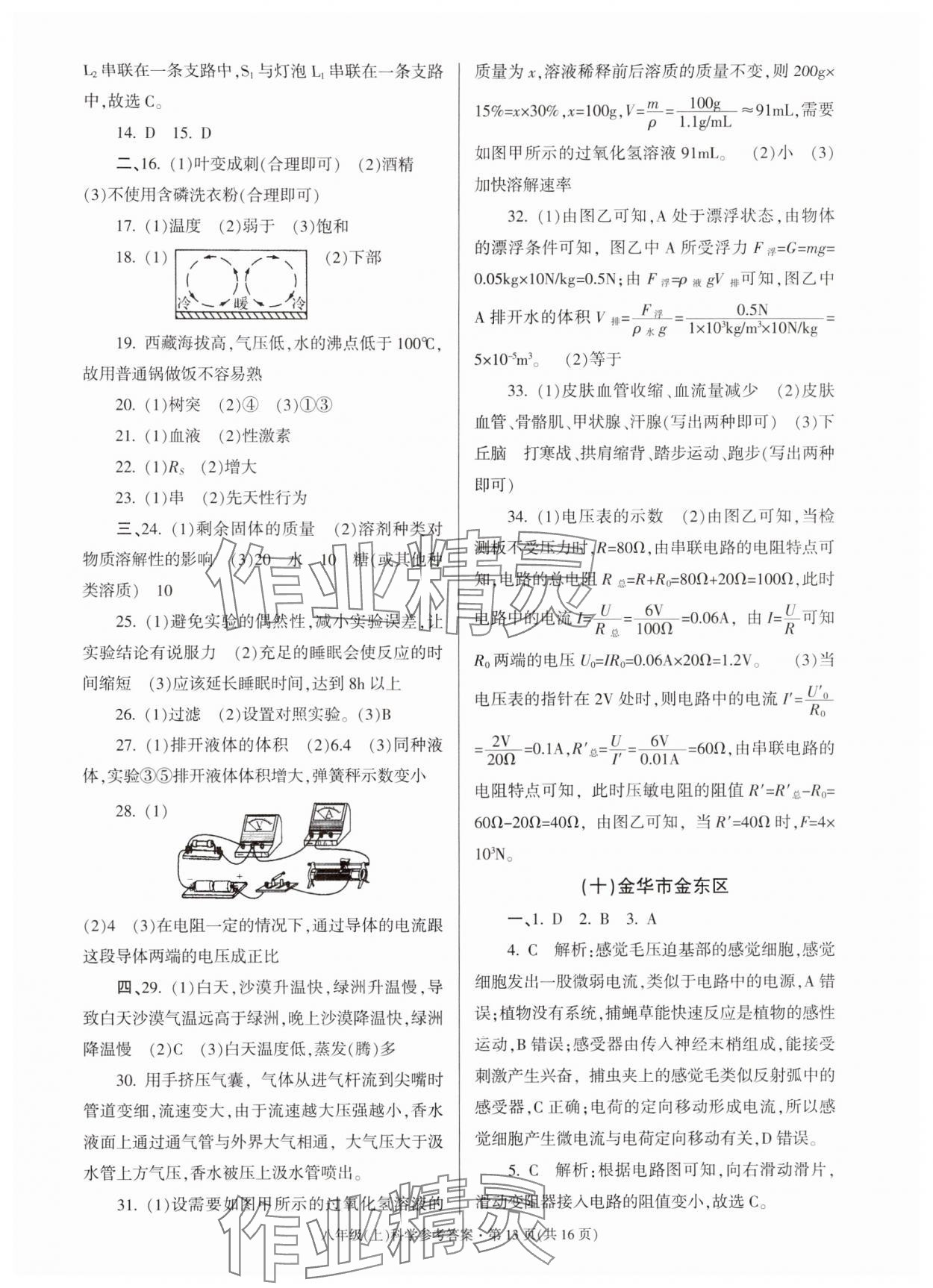 注:目前有些书本章节名称可能整理的还不是很完善,但都是按照顺序排列的,请同学们按照顺序仔细查找。练习册 2024年浙江省各地期末试卷精编八年级科学上册浙教版 答案主要是用来给同学们做完题方便对答案用的,请勿直接抄袭。