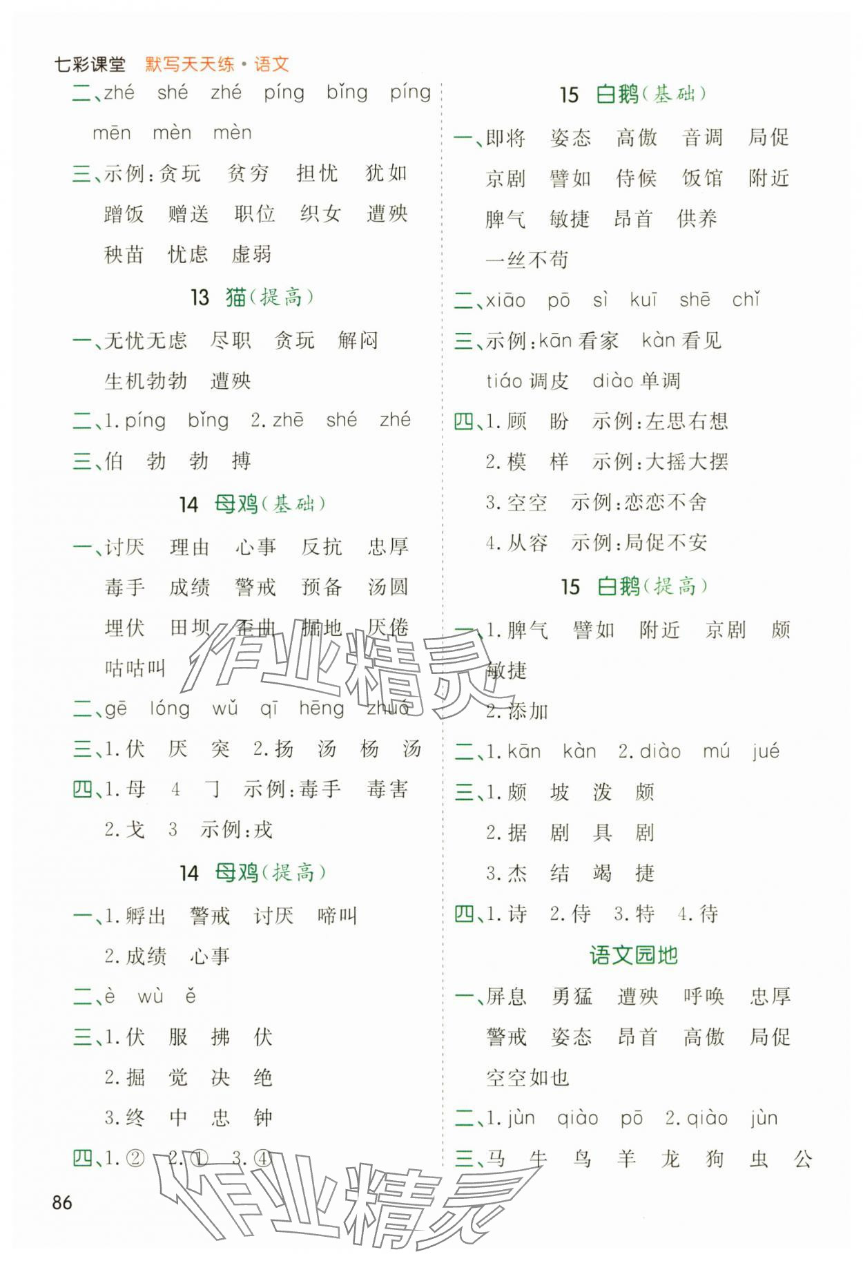 注:目前有些书本章节名称可能整理的还不是很完善,但都是按照顺序排列的,请同学们按照顺序仔细查找。练习册 2025年七彩课堂默写天天练四年级语文下册人教版 答案主要是用来给同学们做完题方便对答案用的,请勿直接抄袭。