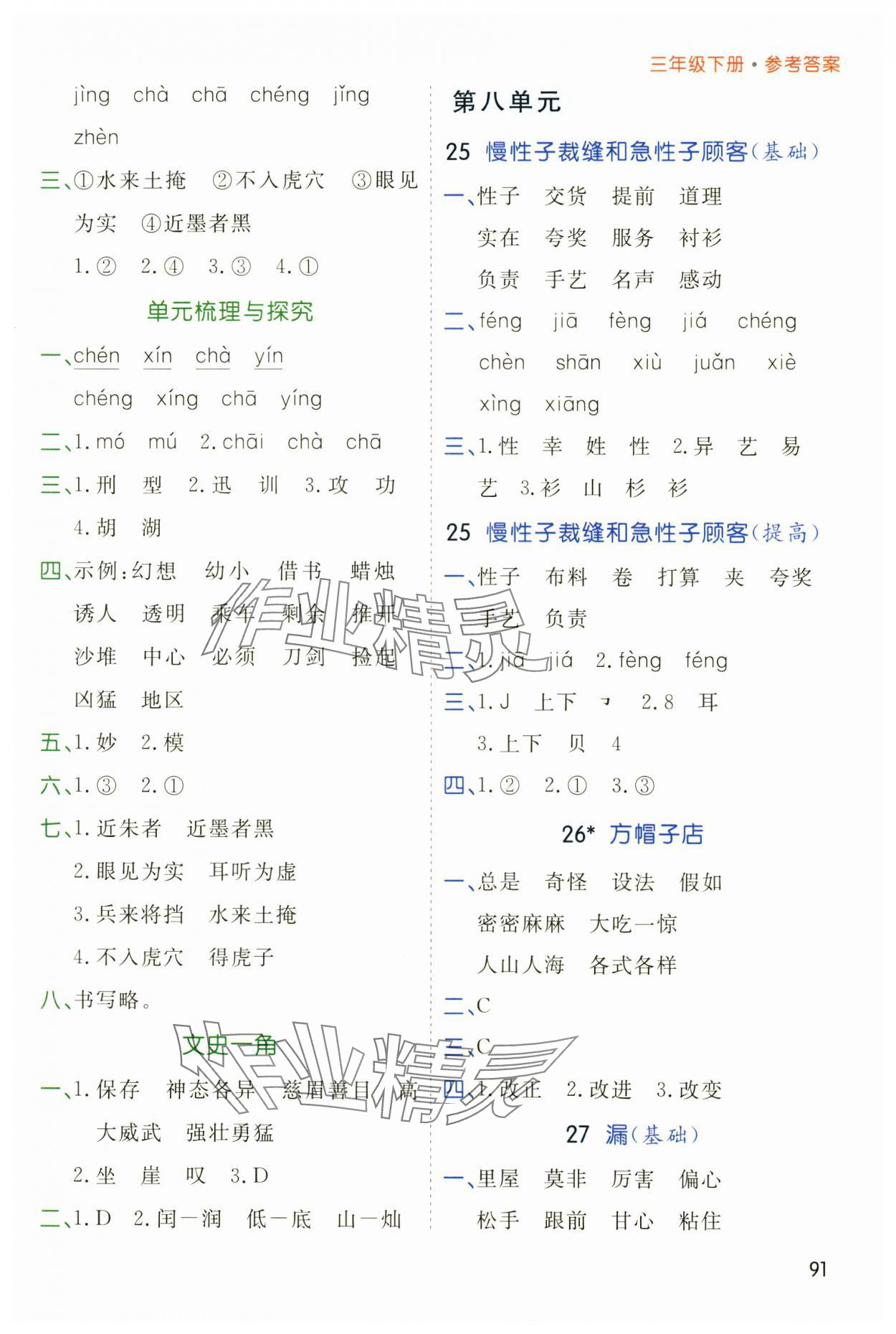 注:目前有些书本章节名称可能整理的还不是很完善,但都是按照顺序排列的,请同学们按照顺序仔细查找。练习册 2025年七彩课堂默写天天练三年级语文下册人教版 答案主要是用来给同学们做完题方便对答案用的,请勿直接抄袭。