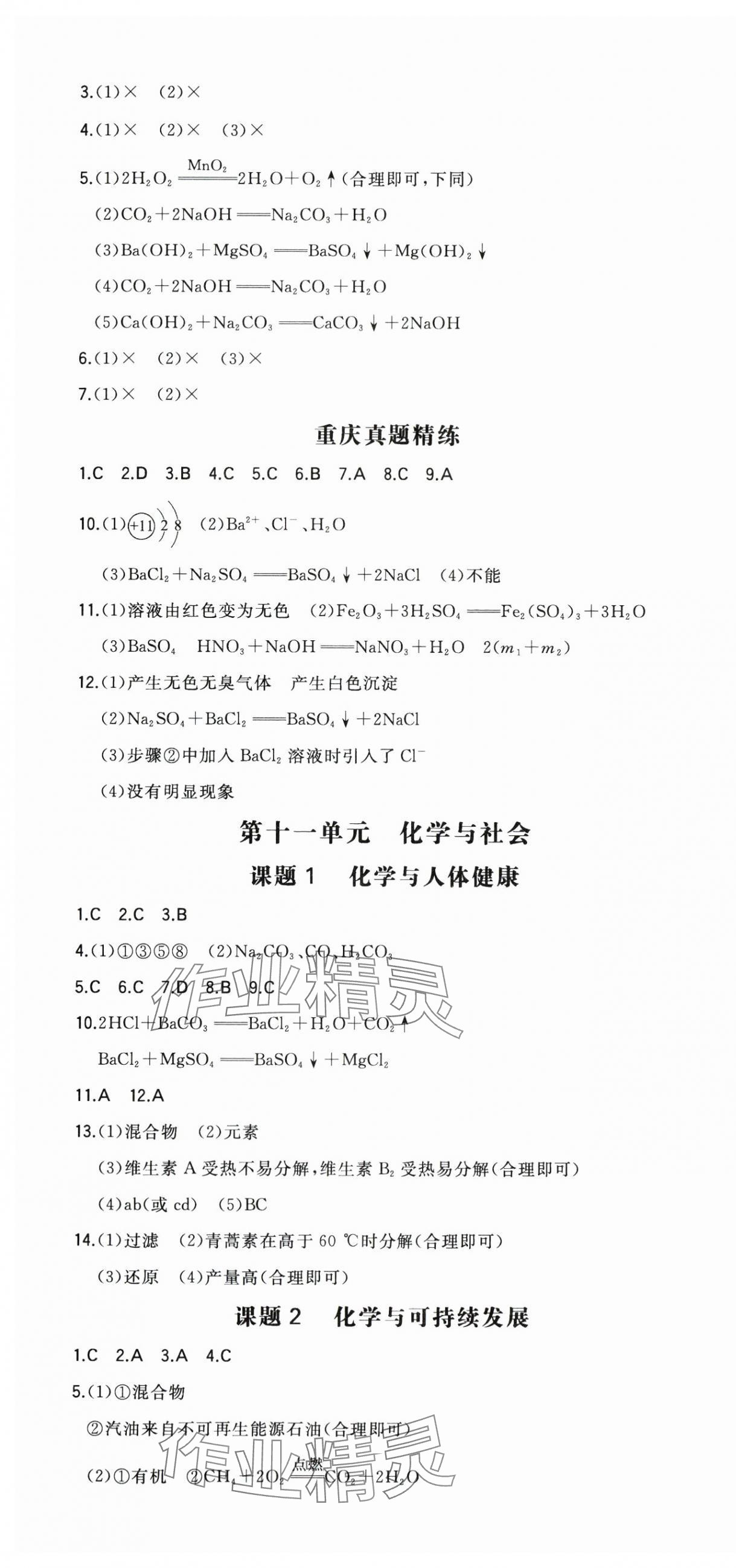 注:目前有些书本章节名称可能整理的还不是很完善,但都是按照顺序排列的,请同学们按照顺序仔细查找。练习册 2025年一本九年级化学下册人教版重庆专版 答案主要是用来给同学们做完题方便对答案用的,请勿直接抄袭。