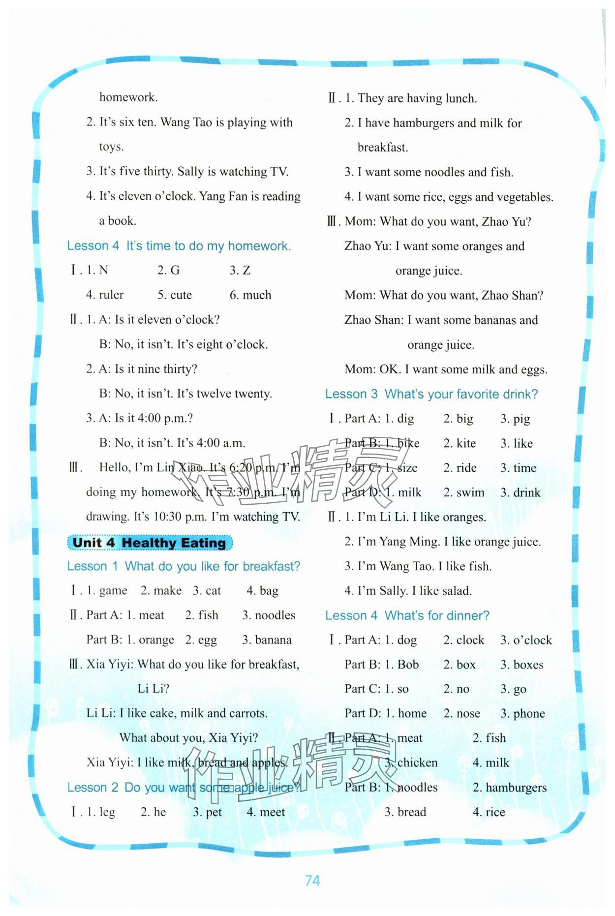 注:目前有些书本章节名称可能整理的还不是很完善,但都是按照顺序排列的,请同学们按照顺序仔细查找。练习册 2025年快乐英语课时通三年级英语下册闽教版 答案主要是用来给同学们做完题方便对答案用的,请勿直接抄袭。
