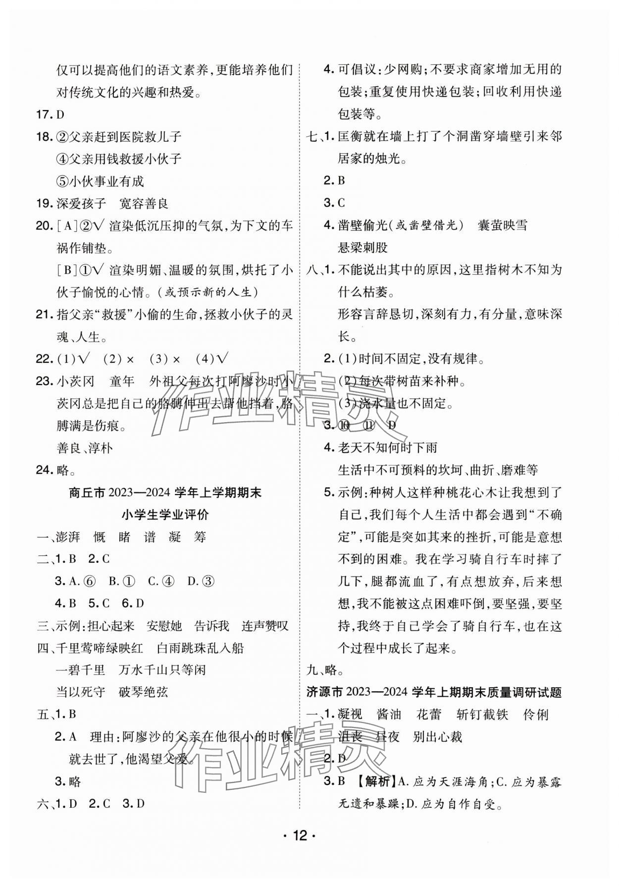 注:目前有些书本章节名称可能整理的还不是很完善,但都是按照顺序排列的,请同学们按照顺序仔细查找。练习册 2024年期末大盘点六年级语文上册人教版河南专版 答案主要是用来给同学们做完题方便对答案用的,请勿直接抄袭。