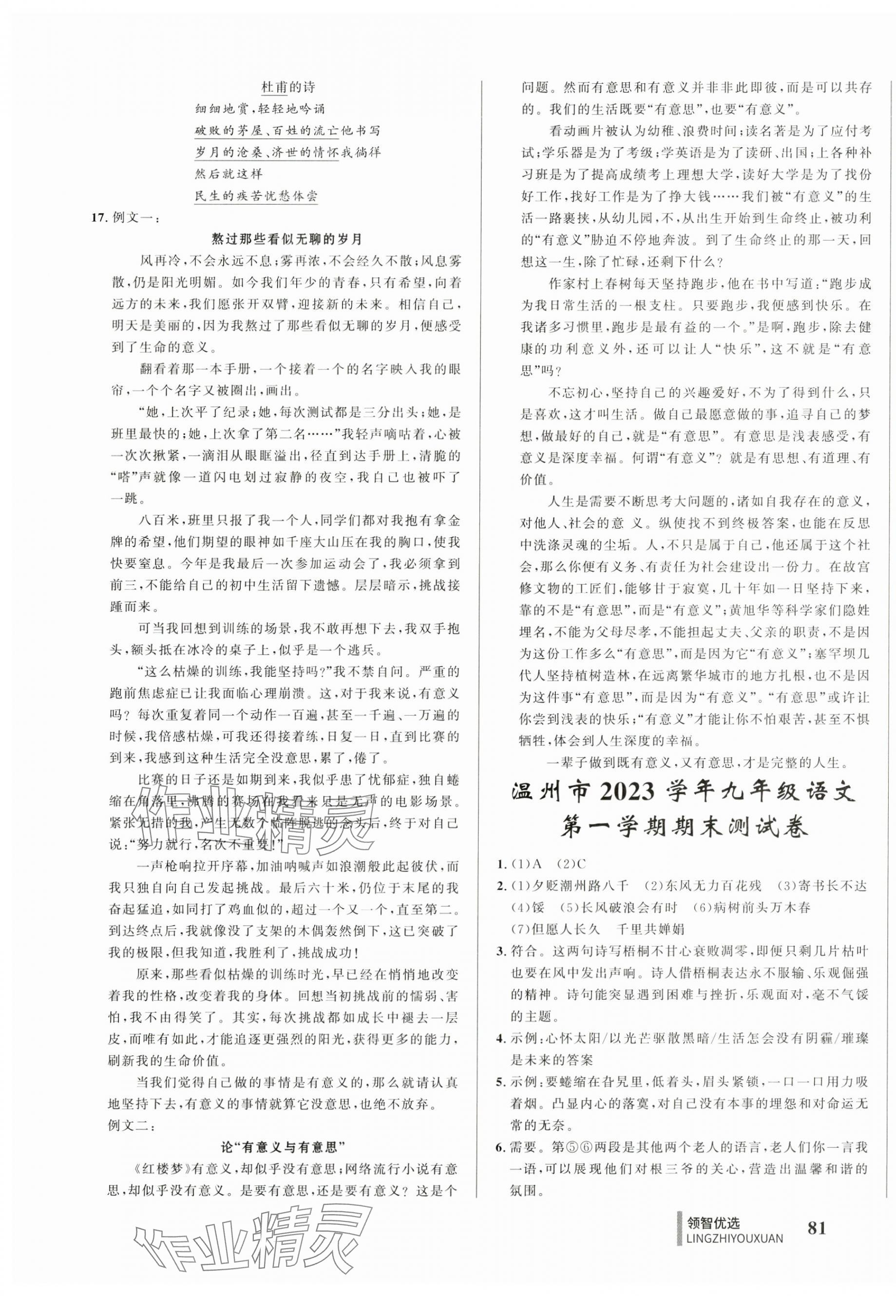 注:目前有些书本章节名称可能整理的还不是很完善,但都是按照顺序排列的,请同学们按照顺序仔细查找。练习册 2024年领智优选浙江期末复习卷九年级语文全一册人教版 答案主要是用来给同学们做完题方便对答案用的,请勿直接抄袭。