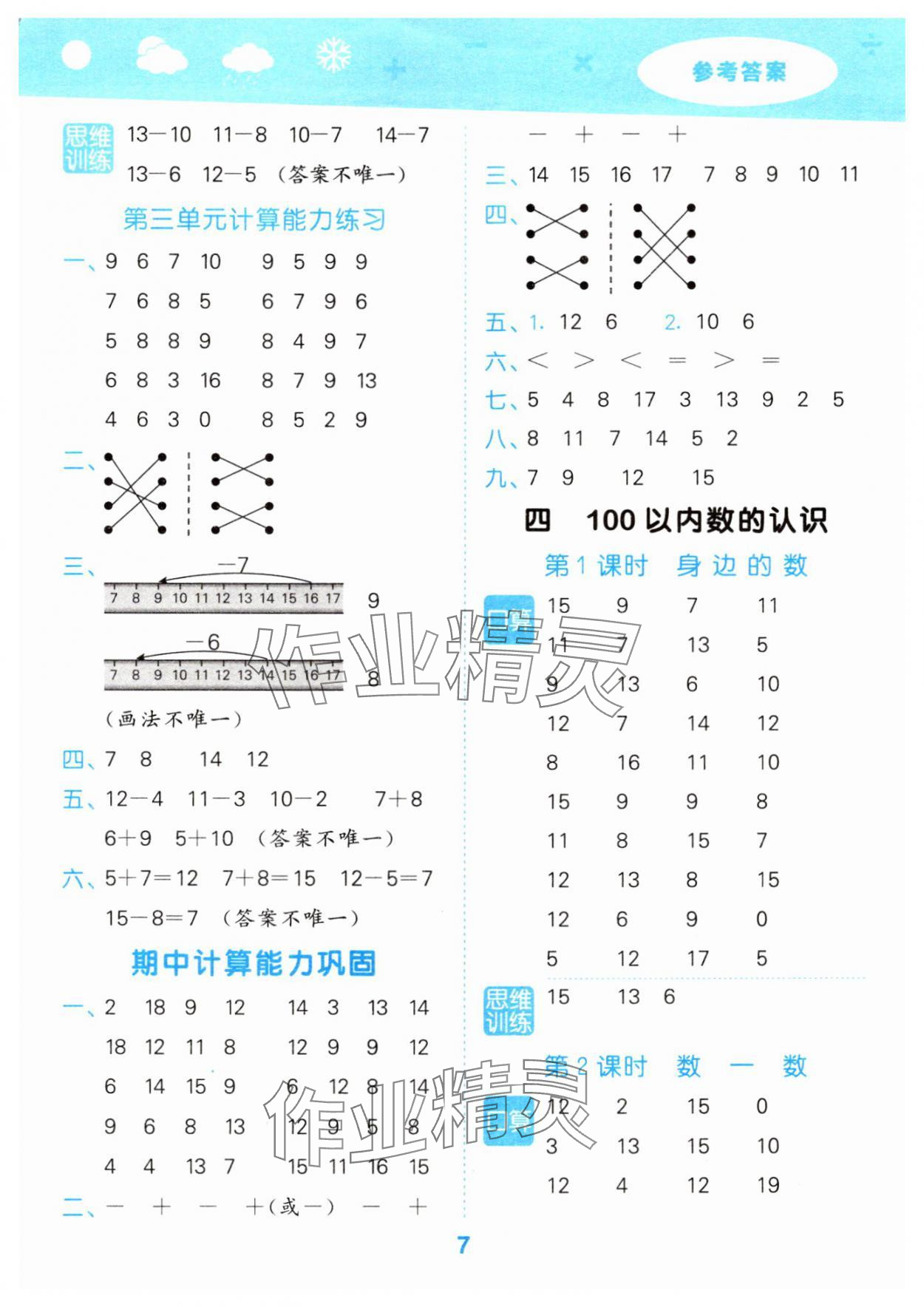 注:目前有些书本章节名称可能整理的还不是很完善,但都是按照顺序排列的,请同学们按照顺序仔细查找。练习册 2025年口算大通关一年级数学下册北师大版 答案主要是用来给同学们做完题方便对答案用的,请勿直接抄袭。