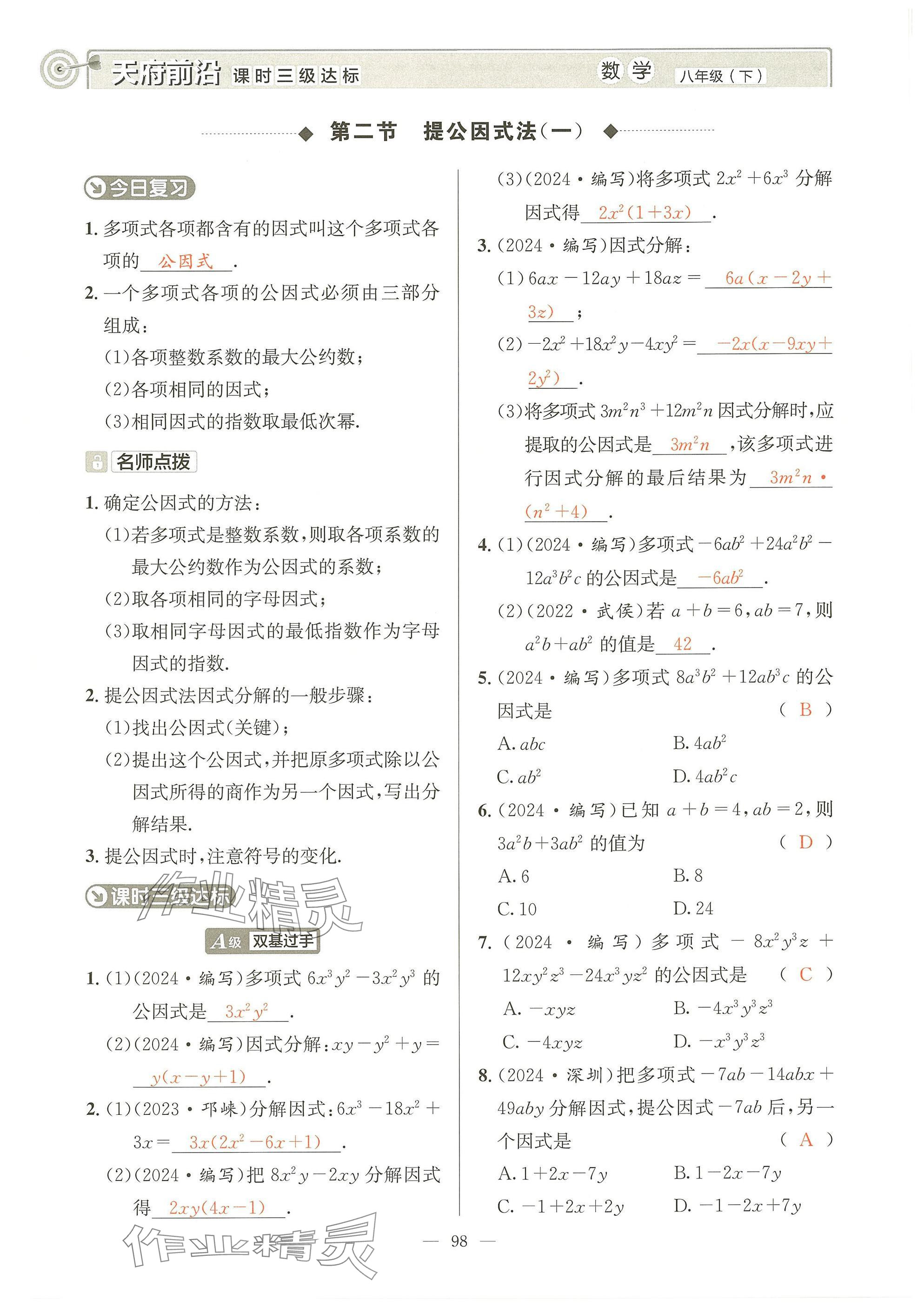 - 参考答案第98页